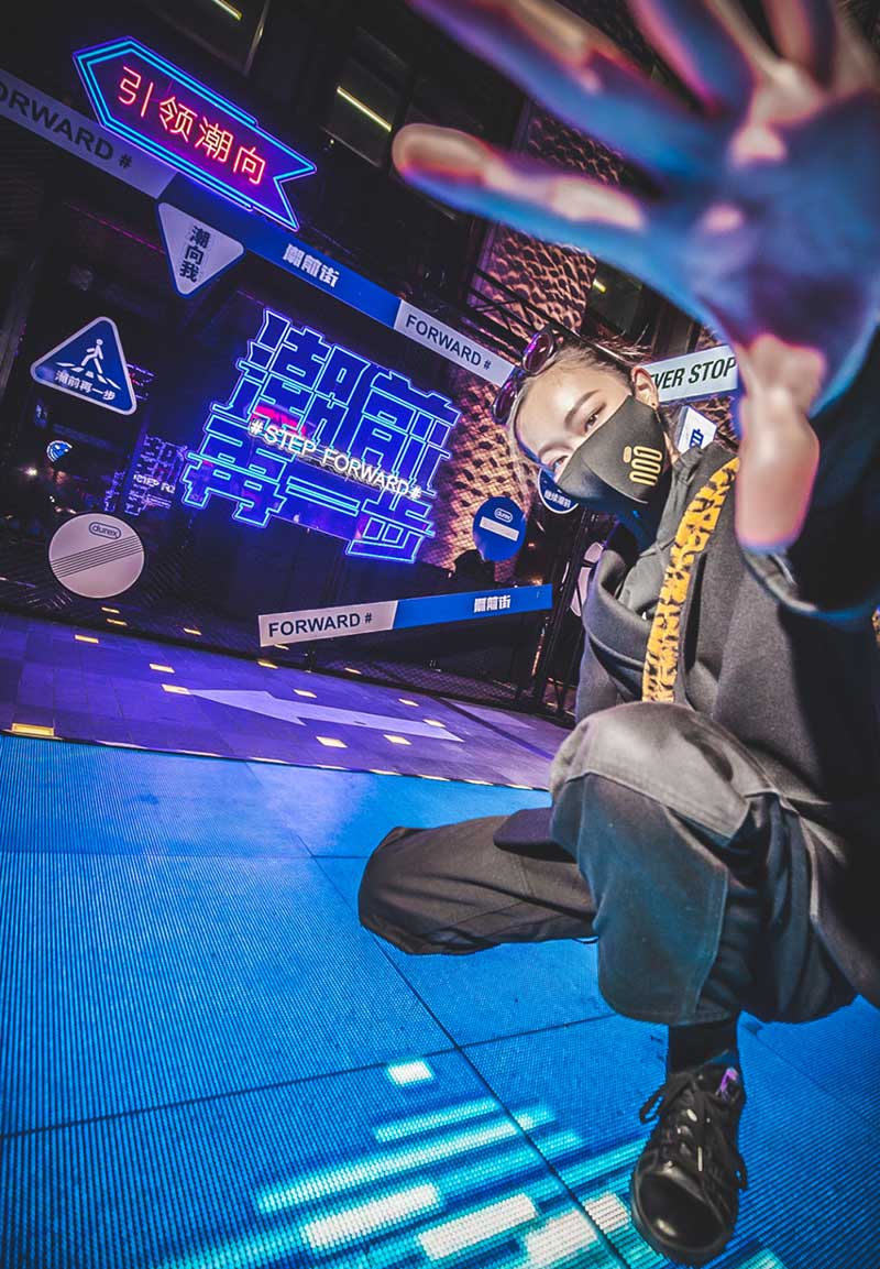 走过很多路,但足迹从未被记录,而在杜蕾斯精心打造的潮前街,全息地屏每向前一步,足迹都会被记录并且放大,形成极具艺术潮流感的几何图案。全息投影技术带来未来感体验的同时,也指引着每一位潮人勇敢向前,更赋予你站在舞台中央的心动瞬间,一起来自信地展现自我,释放“潮”前魅力吧。