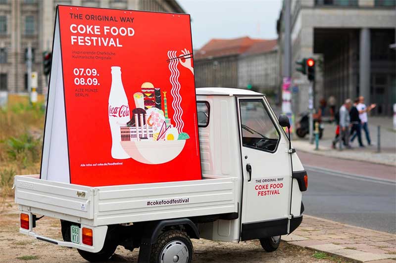 可口可乐在德国举行了一个美食节之旅的活动,并把正宗的美食和非凡的美食家与可口可乐结合在一起。在慕尼黑、柏林和科隆的三站之旅中,客人们享受了各种活动。除此之外,还有厨师现场烹饪、各种美食、现场音乐表演,当然,还有冰可乐。