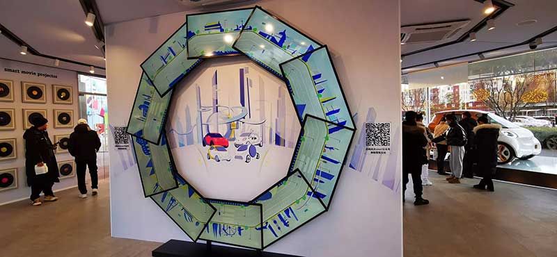 在活动现场,参观者置身于一个未来感十足的研究所中。互动体验展区打造了以smart四辆概念车为核心的透明全景互动空间——漂浮的云朵让品牌轻量化的形象栩栩如生;抬头可望的悬浮星球,也寄予了smart对于辽阔宇宙自由出行的新希冀;交互式电力球则展现了源源不断的纯电能量;更有“手绘城市”的电子DIY涂鸦,让参观者创造自己专属的城市“自驾游”……这些充满未来感与乐趣的场景设计与交互游戏,充分演绎了smart对城市未来出行的大胆畅想与美好愿景。