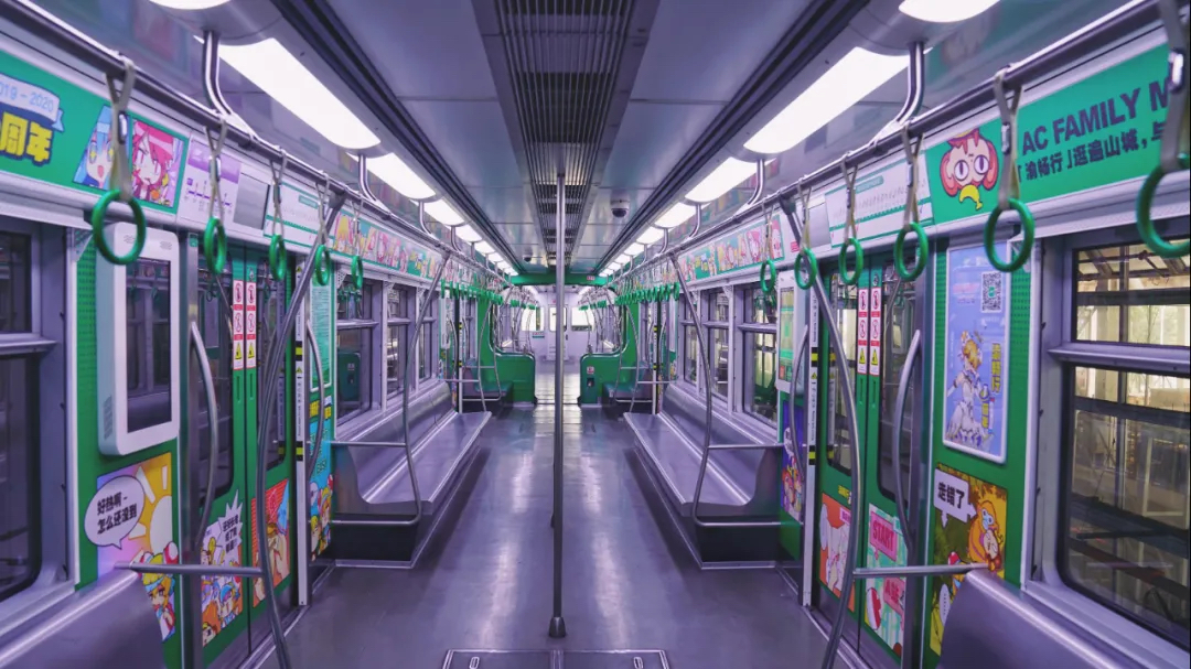 除了这场与UP主”面基”的狂欢Party,早在12月21日,AC娘就开始在重庆频繁出没,携手品牌打造真正属于二次元的重庆之行。首先是穿越次元的单轨车厢在重庆快乐出发,车厢里随处可见趣味梗,A站与渝畅行APP合作的单程票也同步上线。