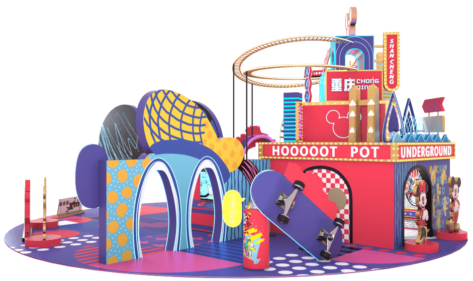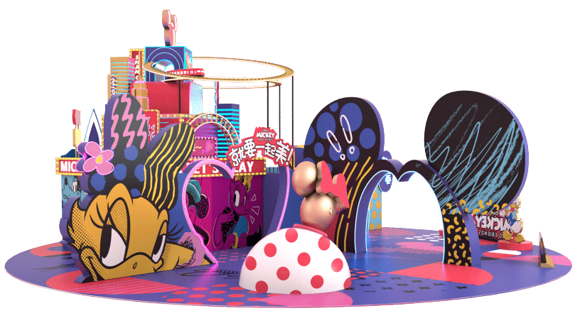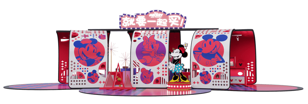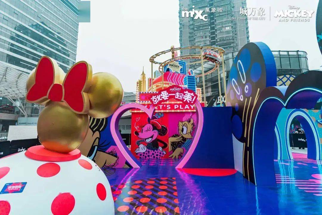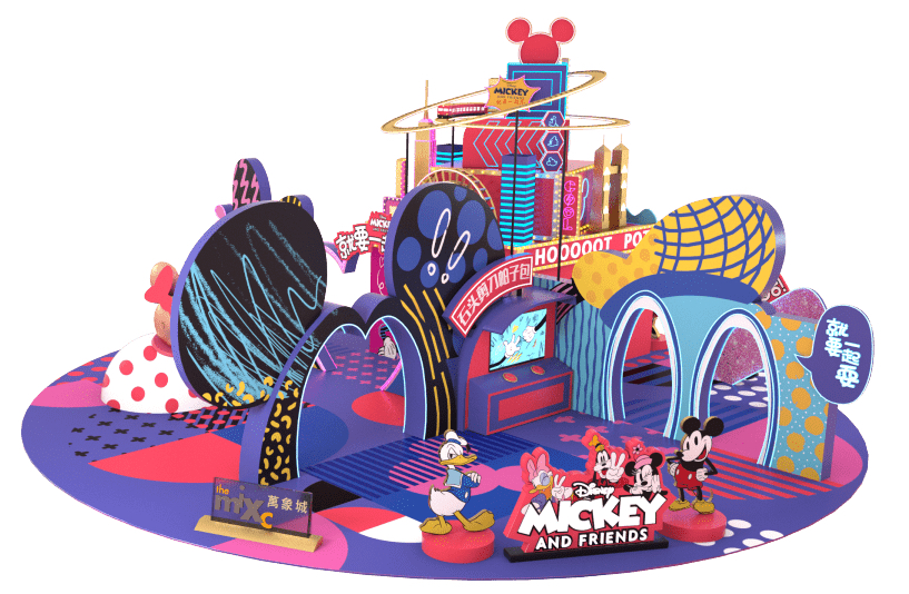 本次”米奇和朋友们”商场特展,以米奇米妮为主要元素设置了不同主题展区。特展里集结了多种朋友社交生活方式:丽人美容社交、亚文化耍酷文化、吃货无敌潮流、欢乐游戏局…它们共同组成了就要一起「美」「酷」「吃」「耍」四个打卡点位。