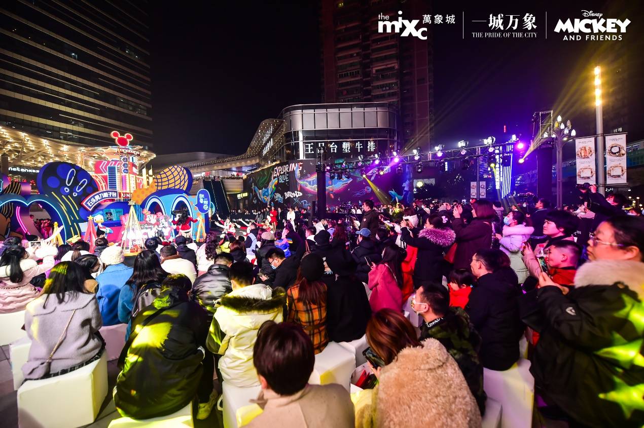 MIXC万象城将迪士尼的经典形象米老鼠带到重庆,点亮了圣诞亮灯装置,拉开了一场专属mini迪士尼乐园的欢乐帷幕。当晚,舞圣蓝童声合唱团的小朋友们身穿圣诞服装齐声合唱,纯净空灵的童声加上用独特的嗓音在圣诞季节送出最真诚的祝福;还有为”米奇和朋友们”商场特展定制的圣诞歌舞,点燃热情万象!