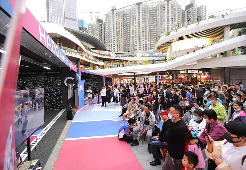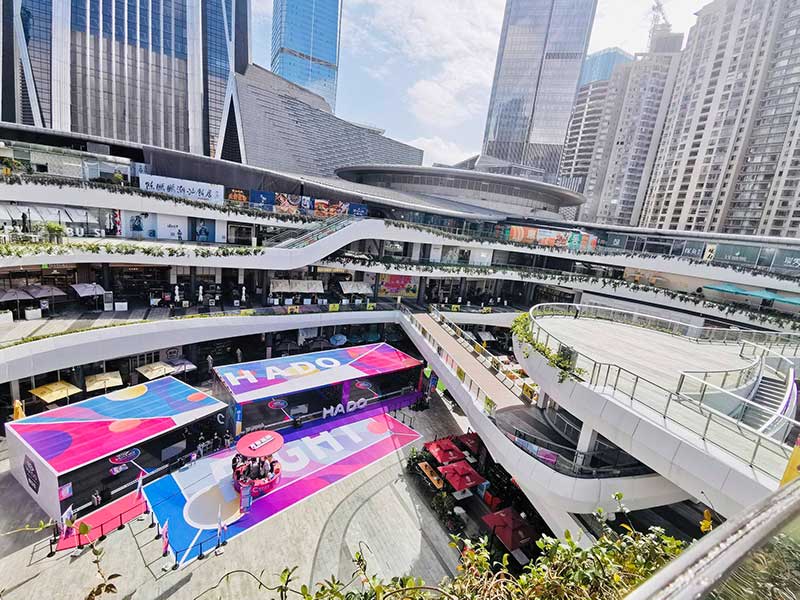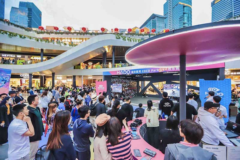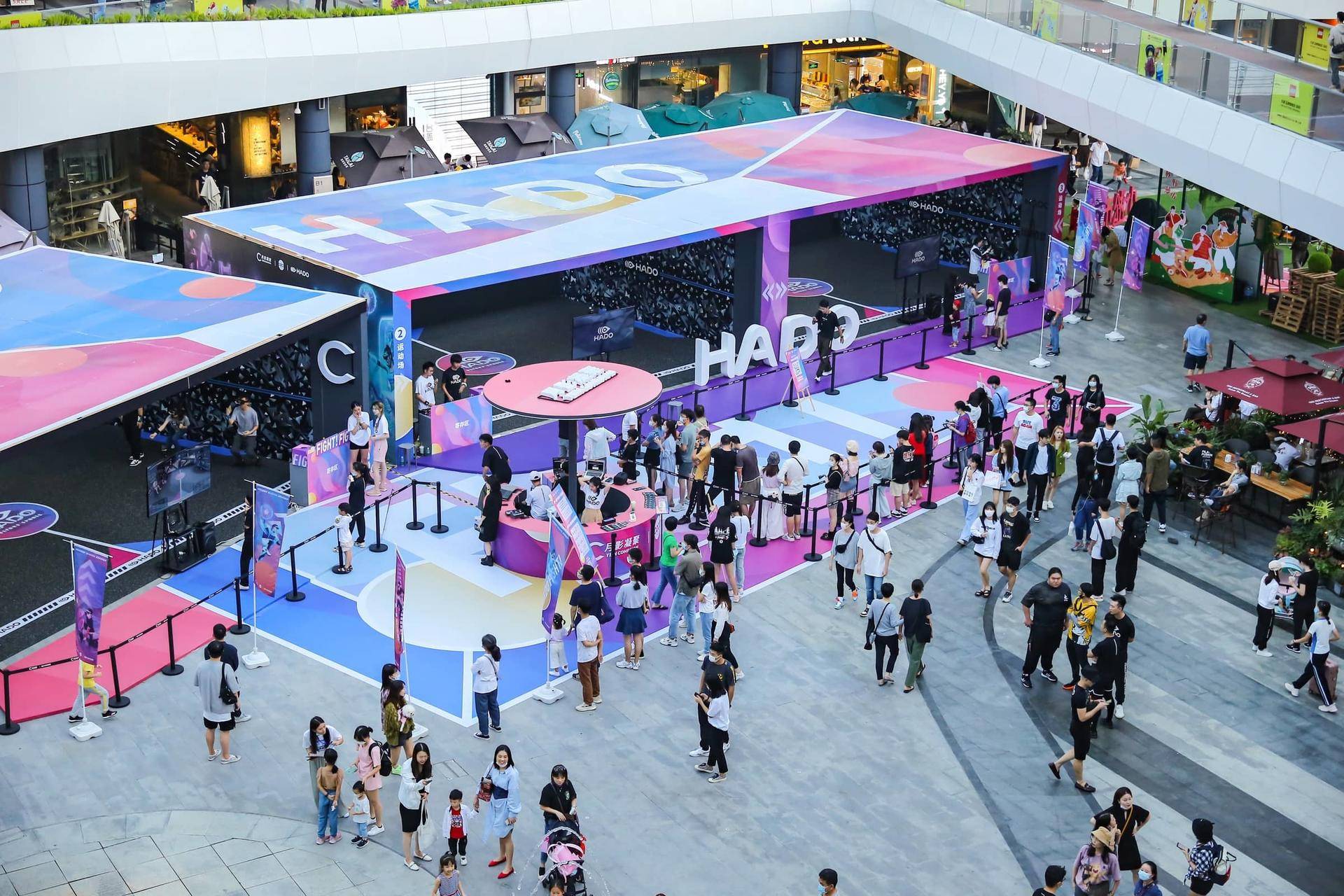 顶着烈日的热情,HADO快闪店的首次亮相,可以看到这次的HADO运动场规模较大,不仅将场地数量升级到了三个,而且从内到外做了全新的设计,为整个星空广场都增添了一种缤纷活力的气息。