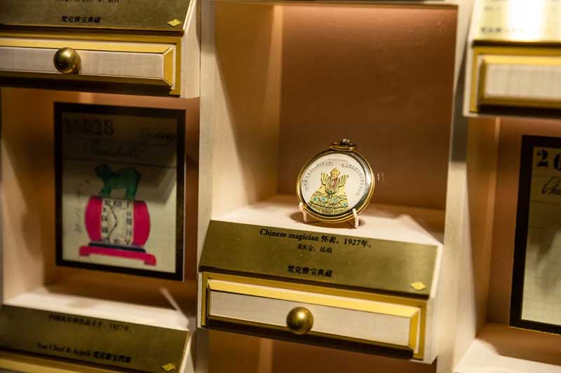 进入展区后首先来到的空间,展示着世家1906年创立至今的百年历史,历任设计师创作的珠宝臻品和珍贵文字照片资料,似一幅璀璨画卷在你面前徐徐展开。这之中,能看到在20世纪20年代末以创新形式诞生的百宝匣(Minaudiere),精巧小盒能容纳各色小物还方便随身携带和取拿,可以看作是当今多功能化妆盒的“鼻祖”。