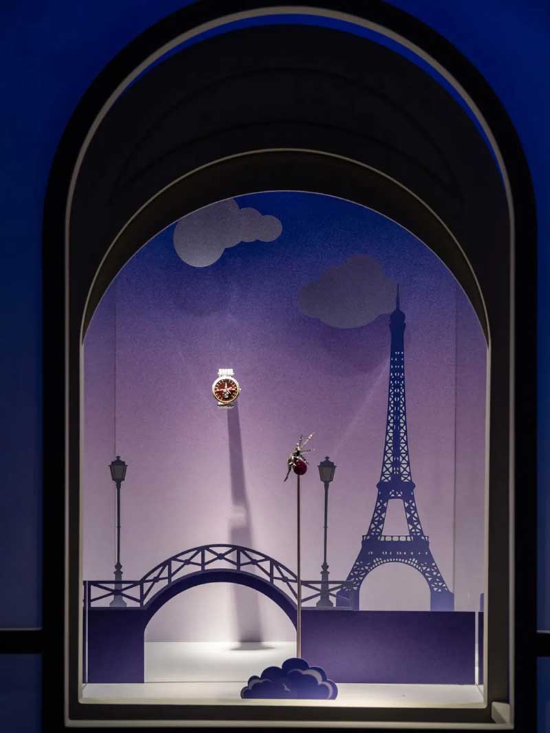 在广场中心展示的主角,也正是“浪漫的化身”——“情人桥”腕表,新款的夜间、日间和男士版本,在这一同亮相。新款的四季版本也在周围展出,无论日月更迭、四季变换,“等待”与“相逢”都始终不变。这里还专门设置了拍照打卡点,将“情人桥”腕表表盘上的拱桥从巴黎带到魔都,让你能直接在此化身爱情故事中的主角,开启属于你的浪漫故事。