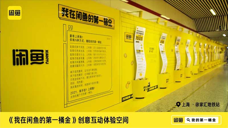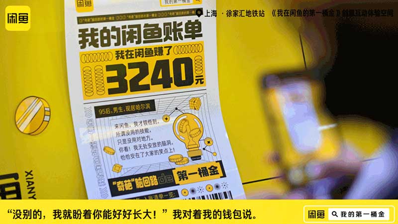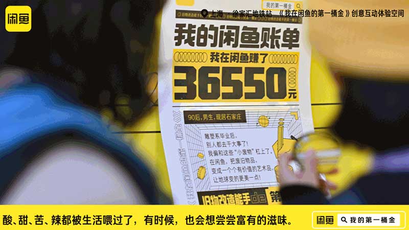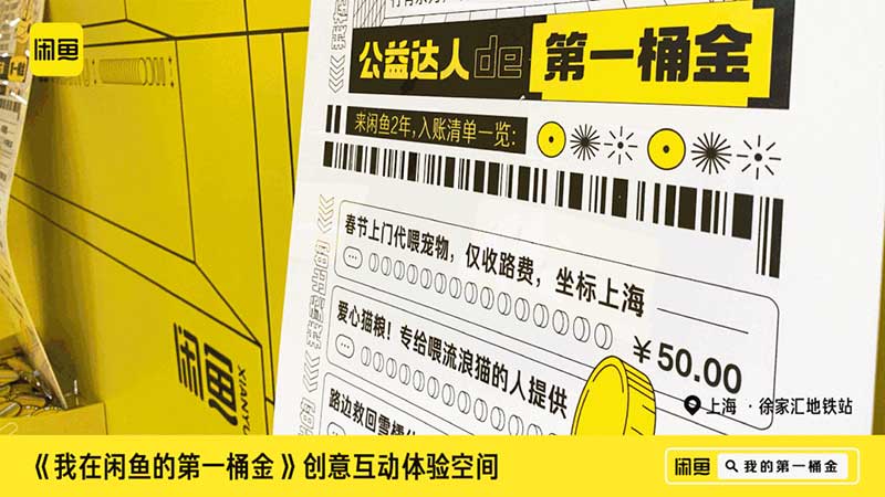 短短几百米的换乘路线,化身时髦、清新的黄色账单墙,停下脚步来仔细看看,原来这里是闲鱼的“第一桶金账单”。数码发烧友、球鞋收藏家、断舍离大师……12张账单代表着不同的人物形象,一张二次元主题账单。第一桶金账单不仅仅是账单,更可以从明细中看出每个人的兴趣爱好和生活方式,相信墙上的十二个人设中总有一个能让你发现自己的影子。