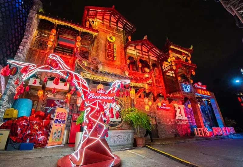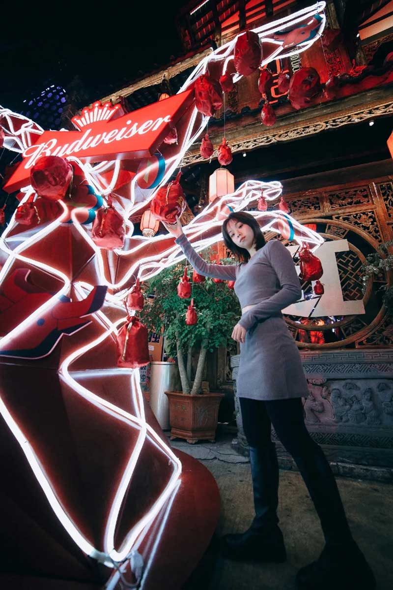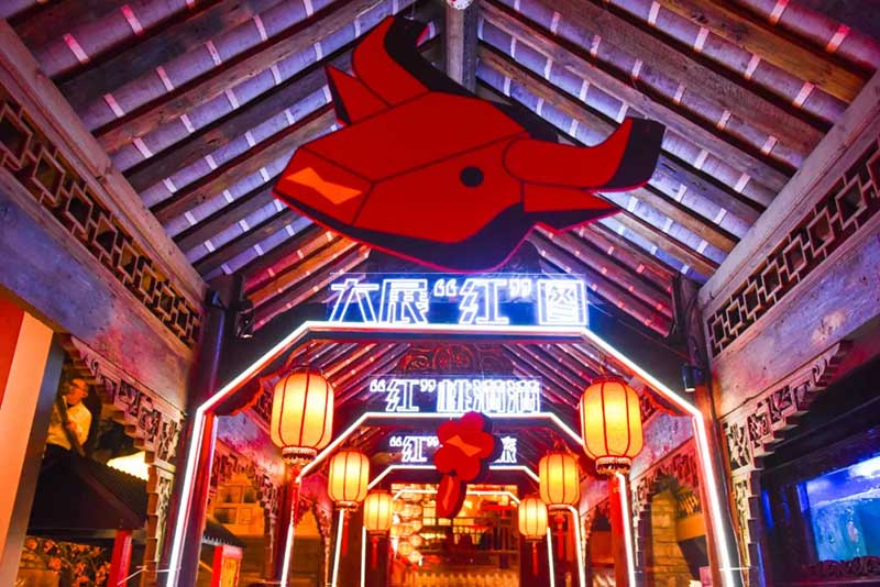 福州惊现一栋外表酷炫的“红”运楼,门口的水帘还会“写字”?巨大福袋树和“红”字,喜气洋洋,限时一个月,还不快去打卡!啤酒界大佬百威,联合北浪红运火锅一起“干大事”了,全新升级的百威“红”运楼不止让你吃爽喝足,还要撒开了玩儿!“红”运照相馆、“红”运长廊、互动麻将….全部免费体验,骑着牛头,新年肯定会牛气冲天!