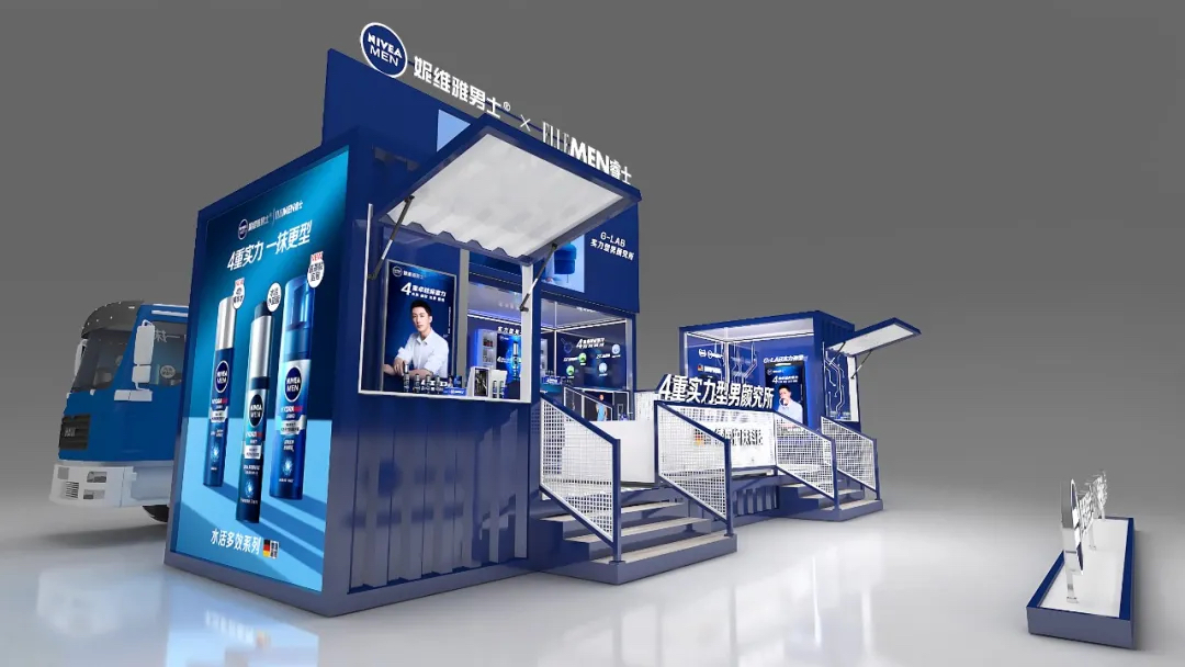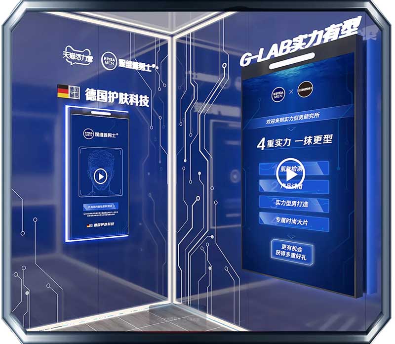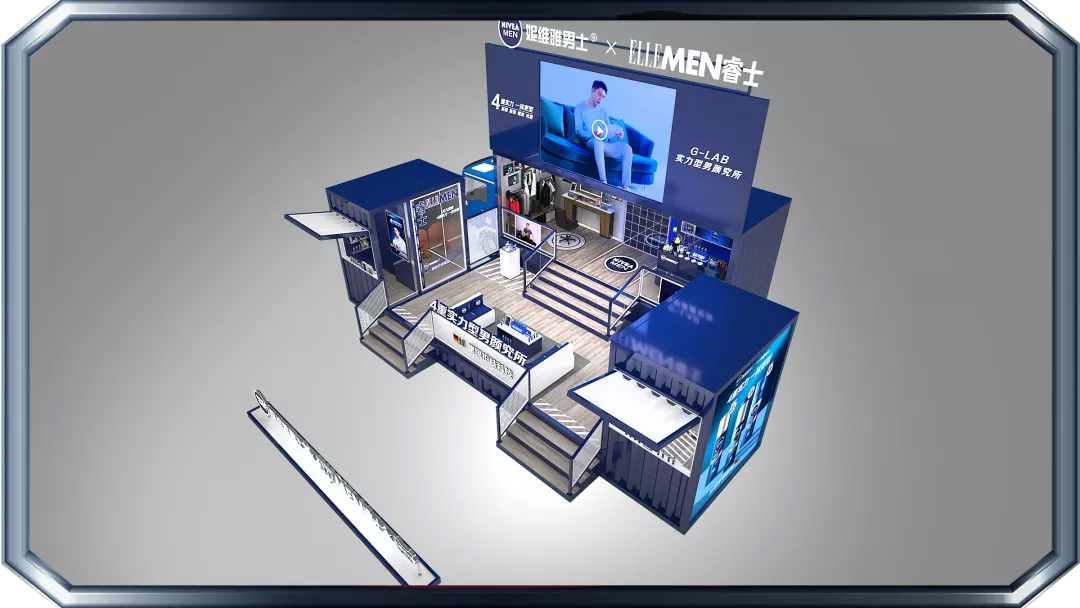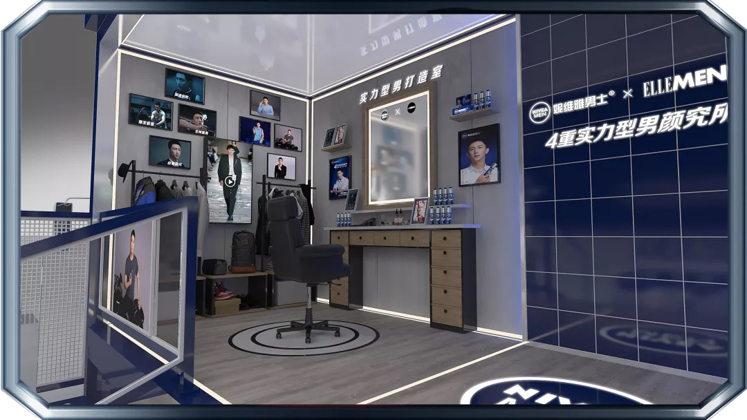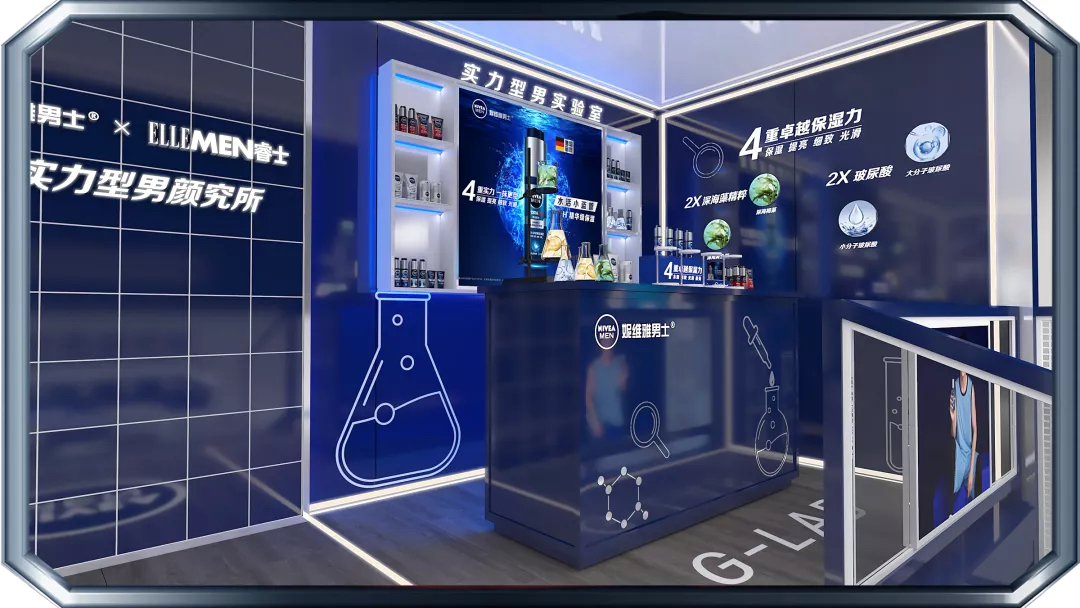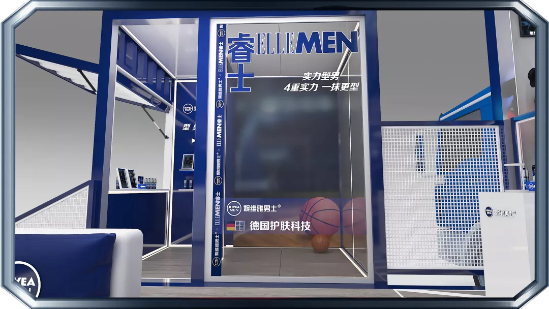 来到快闪店的第一站,映入眼帘的蓝白色系装置格外吸晴,进入新科技肌肤测试区,进行定格拍照后,关注妮维雅男士微信公众号,便可解锁你的肌肤测试报告。