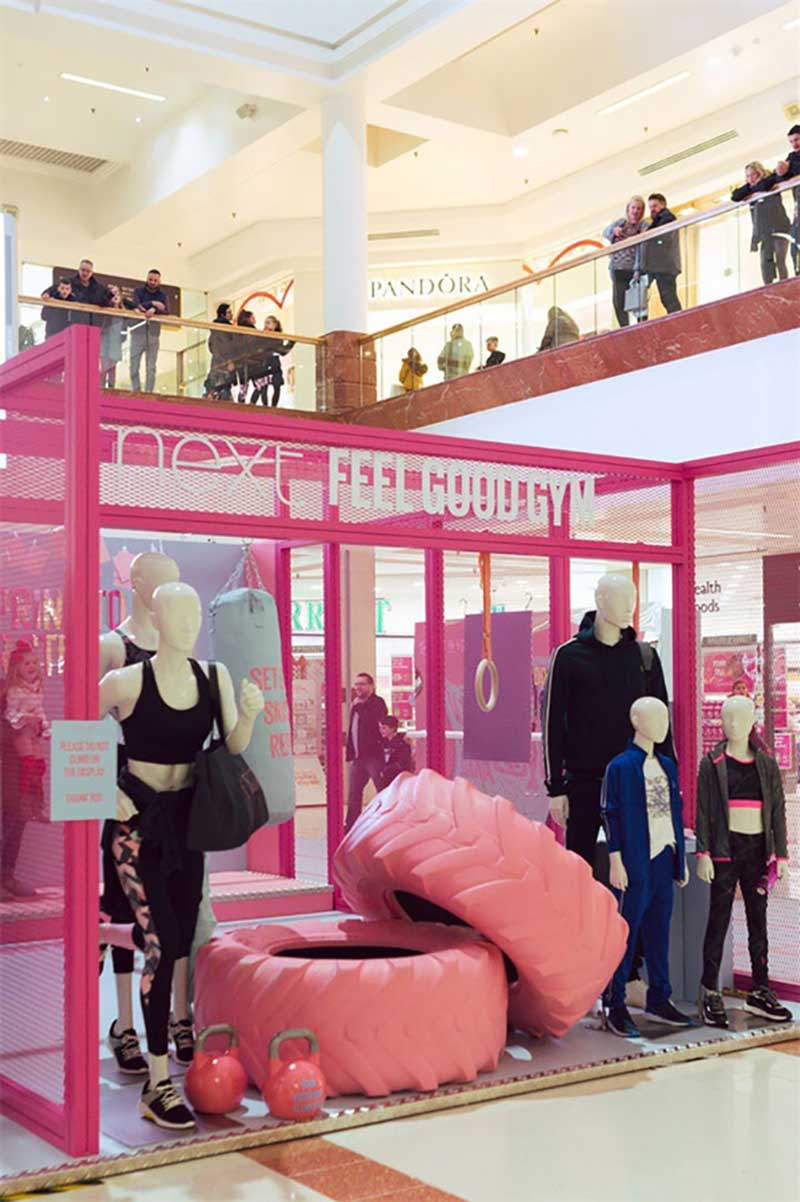 为了推广Next自己的运动服装品牌NXSports,并支持“给你的步伐增添活力”的活动,Next策划了“好感健身房”体验活动。活动现场被设计成一个受欢迎的运动健身空间,鼓励大众参与,帮助消费者对锻炼产生更加积极的感觉。