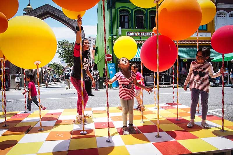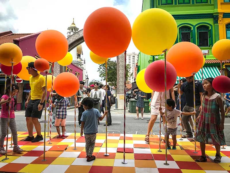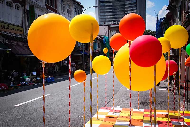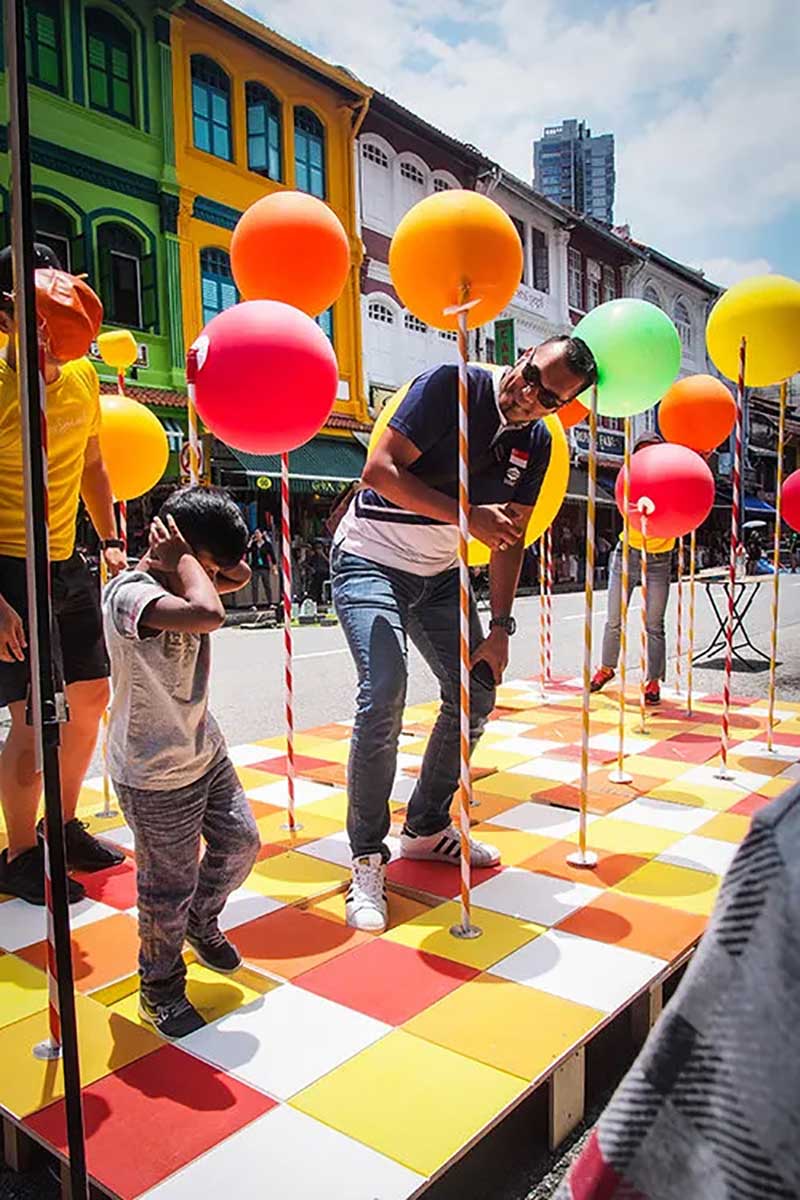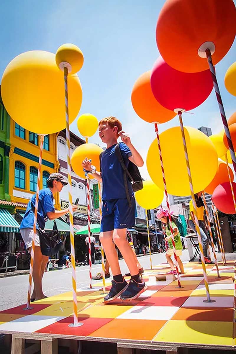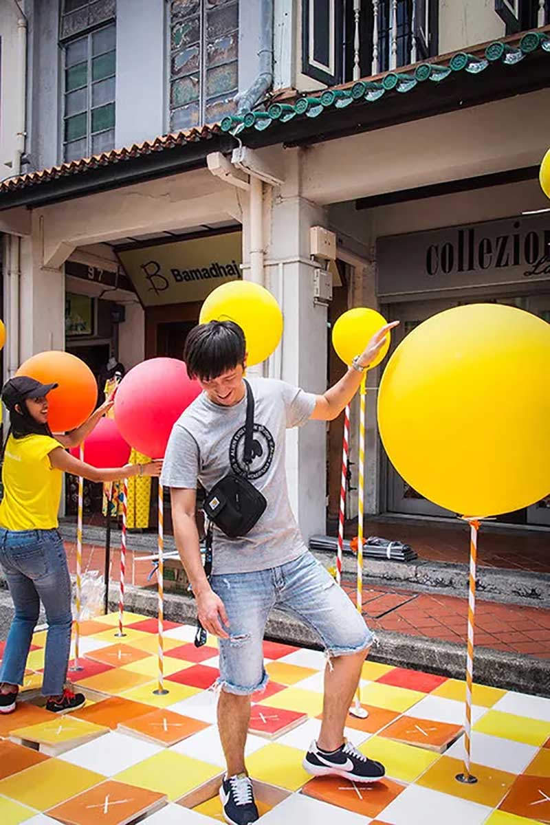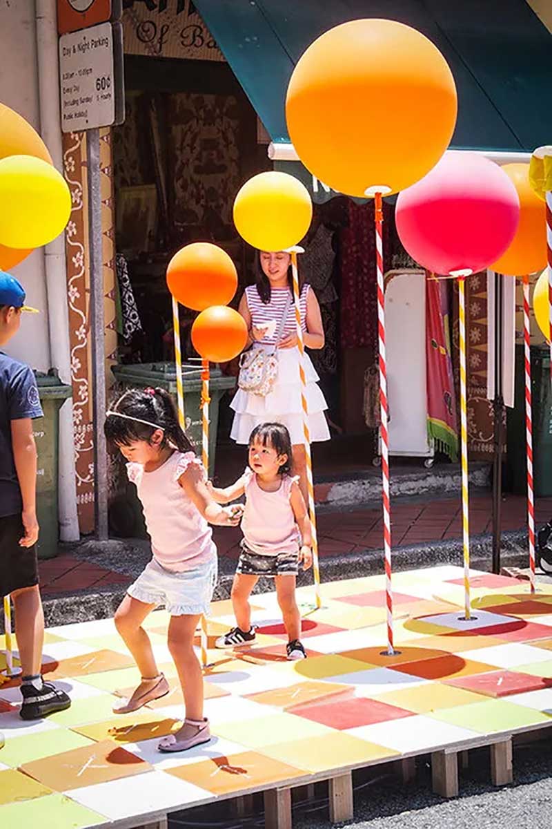 PMQ元创方联合设计团队One Bite Design Studio带来奇妙的气球丛林「Stamp To Smile」——设置多个气阀踏板,踩下打气,把气球充至圆满,再把烦忧踩走忘记。不过,气球也会和你玩游戏。好好寻找你脚下的踏板,是让哪颗气球鼓起膨胀? 它在眼前最近处,还是在身后的角落洋洋得意?带着希望找寻,惊喜或迟或早、或远或近总会靠近; 你我并肩同行,快乐和惊喜就会长出森林,步履不停,生生不息。