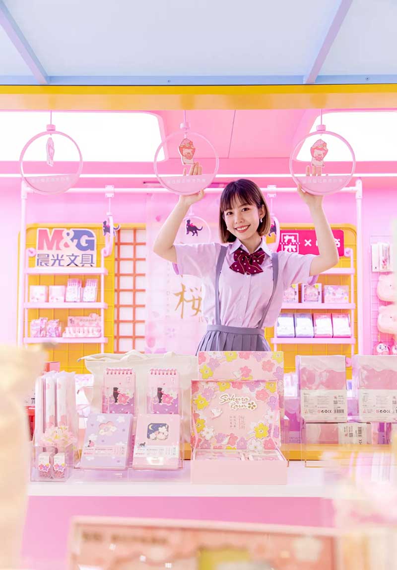 一边逛一边拍,九木快闪店精心设计的小细节,带有标志意义的指示牌、红绿灯甚至模拟了候车厅、售票亭、小推车等,每一处都适合拍照,超级出片。整个快闪店仿佛一个真实的列车站,将搭乘上这列春日樱花列车,开启一段奇妙的美好生活之旅。