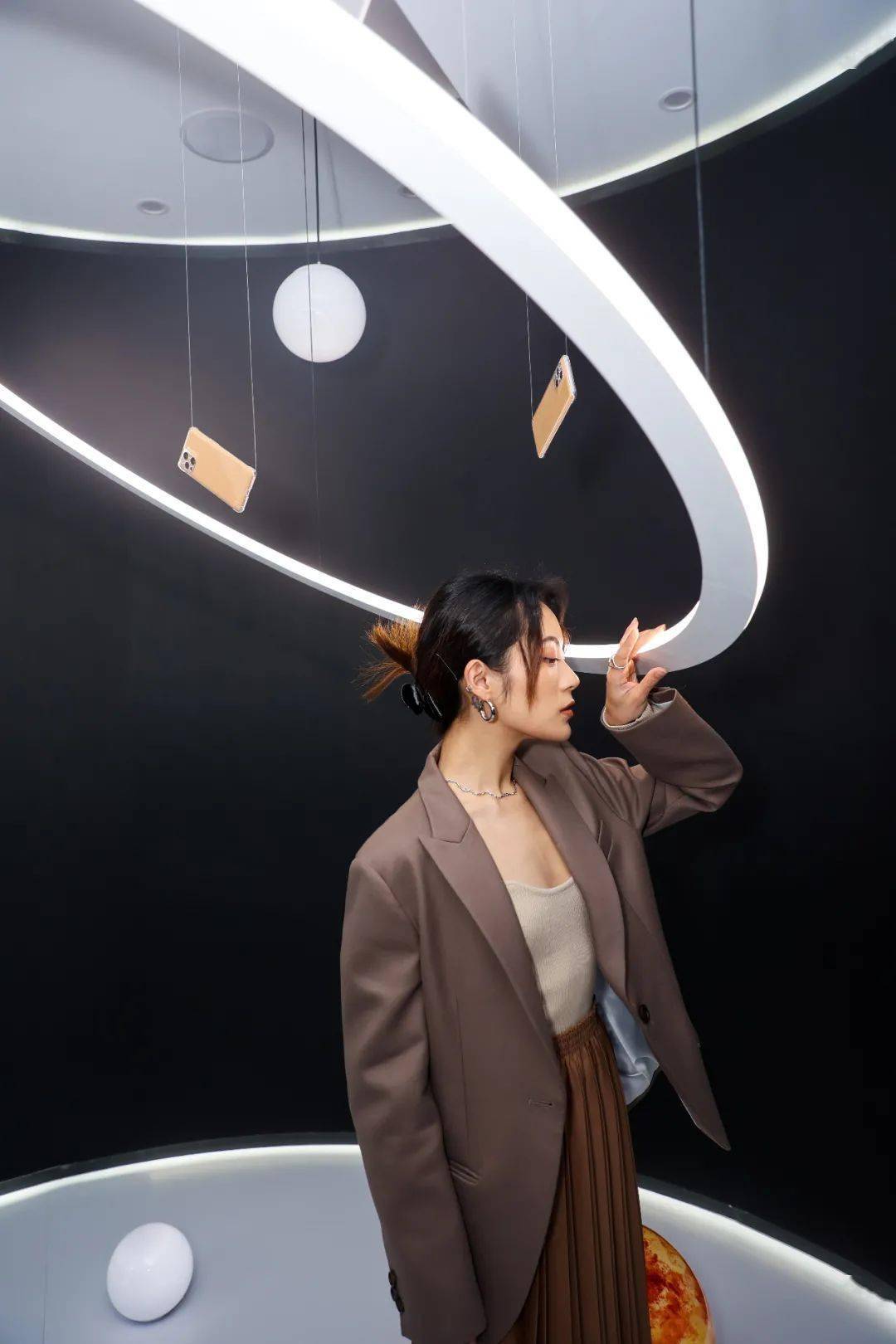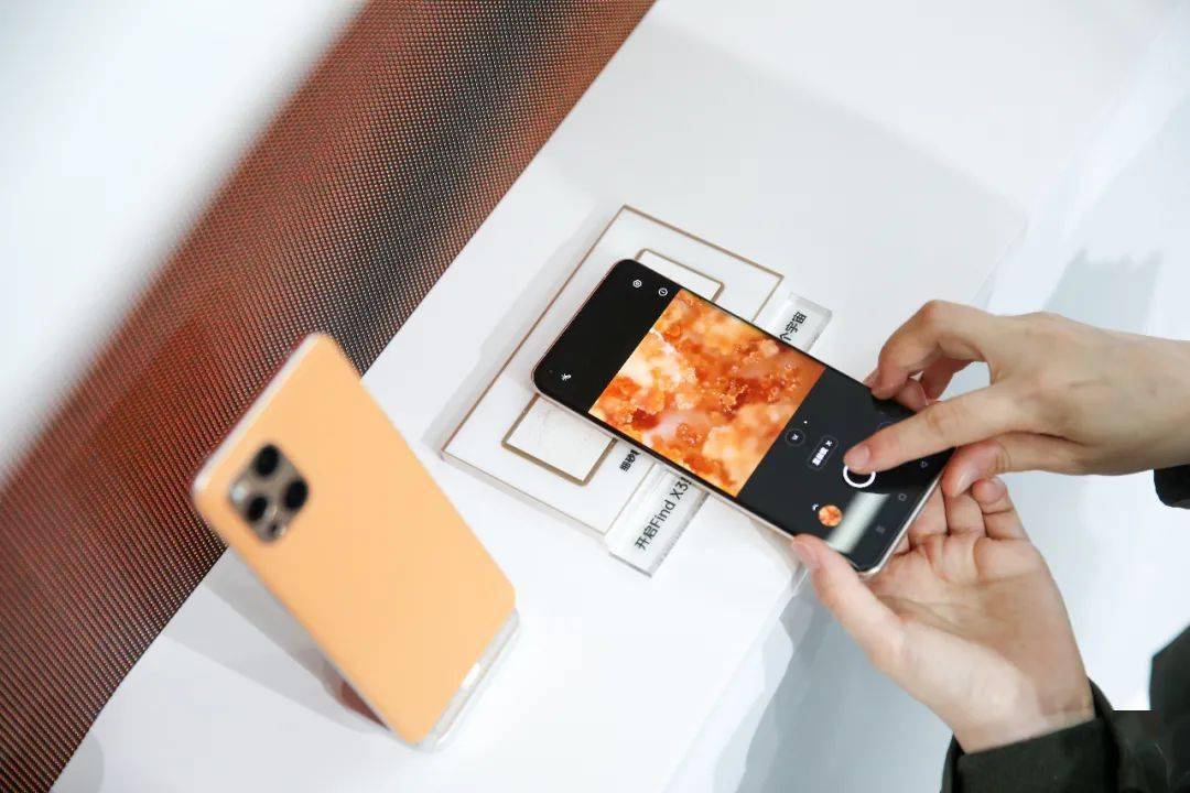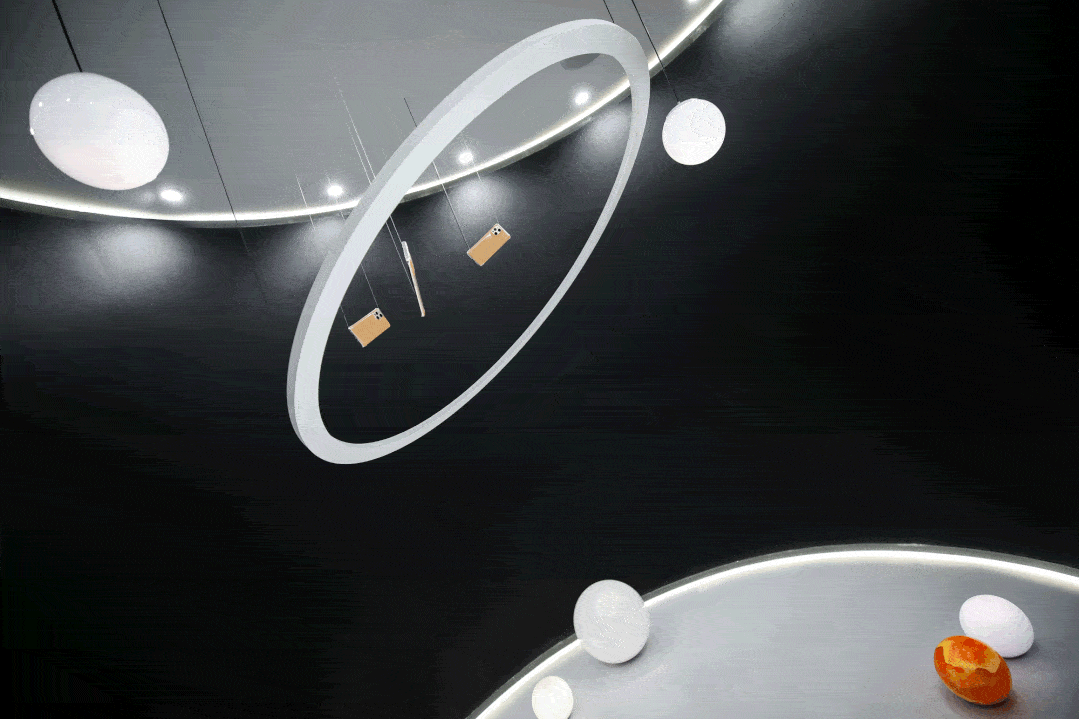 光影流转的简约灰构建出一个开阔的宇宙,一条流光溢彩的摩卡色小行星带勾勒出这个宇宙最旖旎的色彩,鼻尖洋溢着的咖啡香,恰似这宇宙中的一抹甜,沁入心脾。二十台OPPO Find X3 Pro系列整整齐齐地在展台陈列着,就像是持续发光的恒星,兀自吸引着人们的注意。更令人惊喜的是“宇宙”中心还特别设计了一个星球灯光拍照空间,带你体验遨游浩瀚星河的浪漫。在这个静谧的空间里,漂浮着属于星空的声音,一伸手仿佛就能触碰到宇宙的光,美得不可方物。