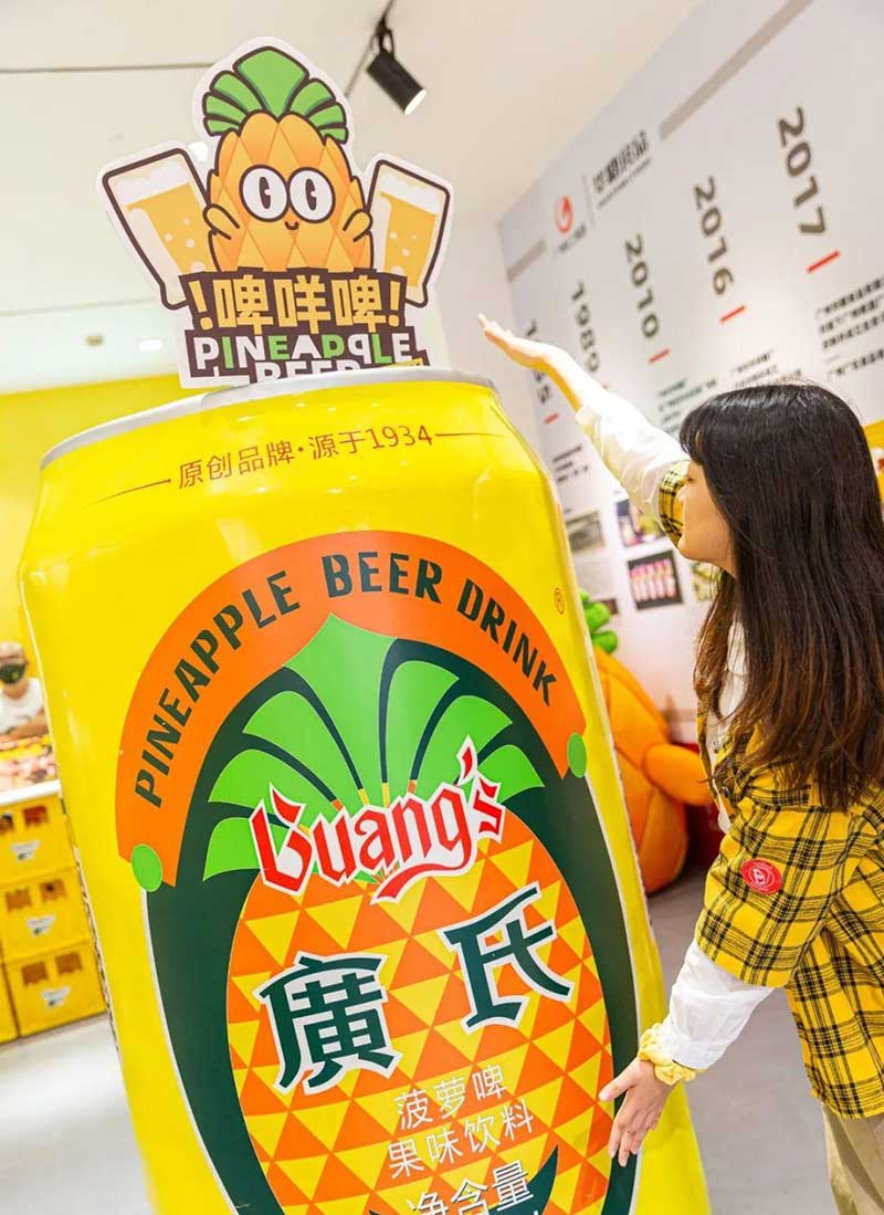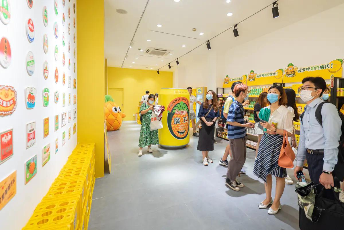 广式菠萝啤在越秀区北京路步行街中段陈李济对面的三层独栋建筑里开起了快闪店,路过的都会被店内巨型菠萝啤模型吸引。开业当天吸引了大批广氏菠萝啤粉丝的关注,现场人山人海,电台、电视台、抖音等行业大咖也在现场进行了直播活动,给粉丝们带来了丰富的奖品,回馈了众多一直在热爱并支持广氏菠萝啤的粉丝朋友们。
