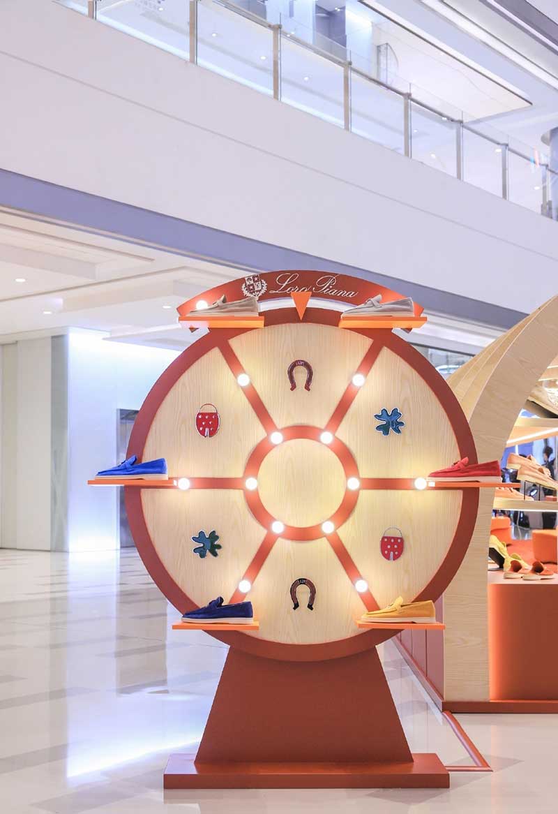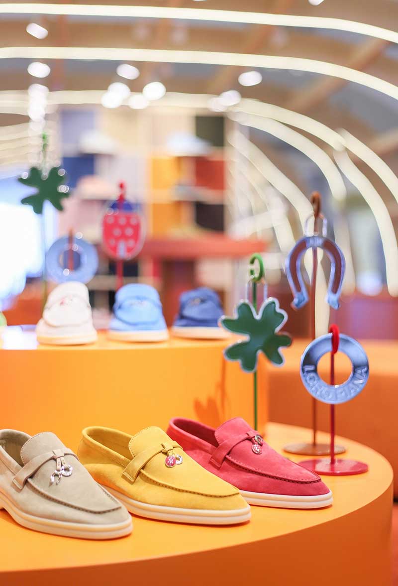 Loro Piana“The Rare Walk”主题快闪店在成都 IFS 盛大开幕,店内木质结构沿袭 Loro Piana 精品店的设计风格,明亮的流行艺术色彩搭配弧形线条、现代装饰风格与灯光交相辉映,营造灵动空间氛围。入口处玩趣的幸运转盘格外吸睛,店内的Lucky Charms装置融入品牌经典系列鞋履的元素,满载意趣生机的Lucky Charms吊坠包含“拥有爱”的马蹄,“发现爱”的四叶草,以及“遇见爱”的七星瓢虫,邀你轻盈步入幸运世界。