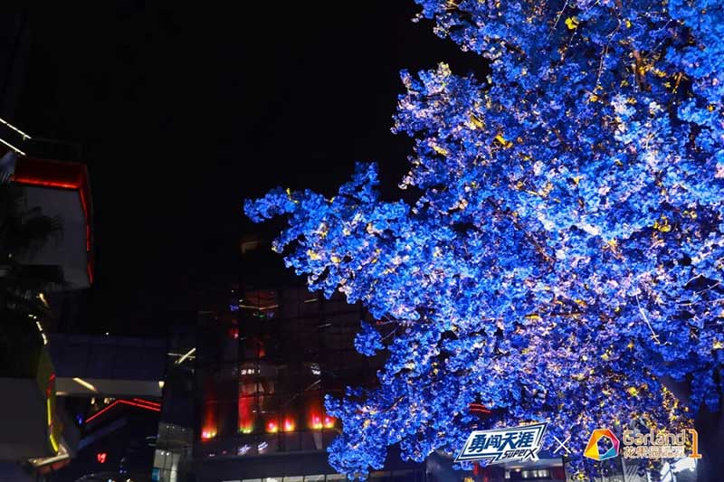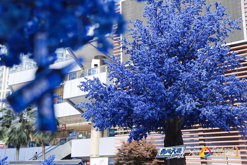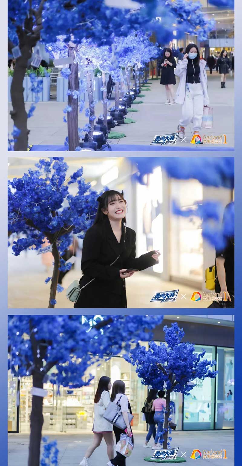 见惯了常规的粉樱白樱,你有没有见过蓝色的樱花?这个四月,花果园购物中心x勇闯天涯SUPER X一起种下了樱花林里,享受一场你没见过的蓝色樱花雨,走过带有Super X蓝瓶标志的鸟屋门楼,就能沉浸于蓝色樱花的梦幻中。