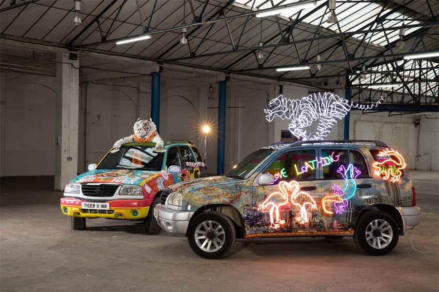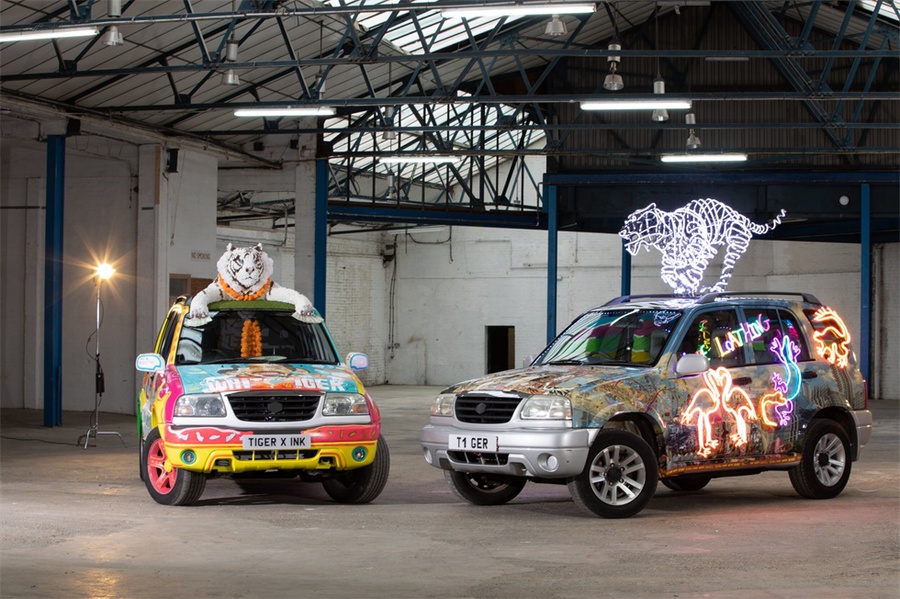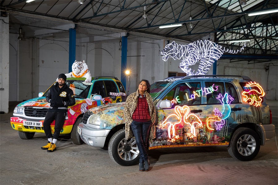 2021年网飞出品了印度电影《白虎》,为了推广该电影,网飞与两位南亚艺术家合作,创作他们对电影中白虎出租车的诠释。活动购买了两辆相当普通的小车,作为两位艺术家创作的“画布”。奇拉·伯曼设计了一个车贴,车身上是她标志性的霓虹灯设计,而顶上是一只霓虹灯材料的老虎,另一辆车则是充满灵感的手绘,描述了电影中的场景,同时在车顶是一只白老虎。