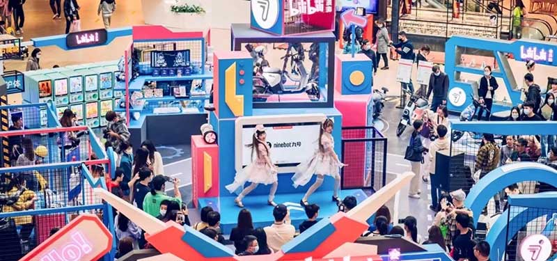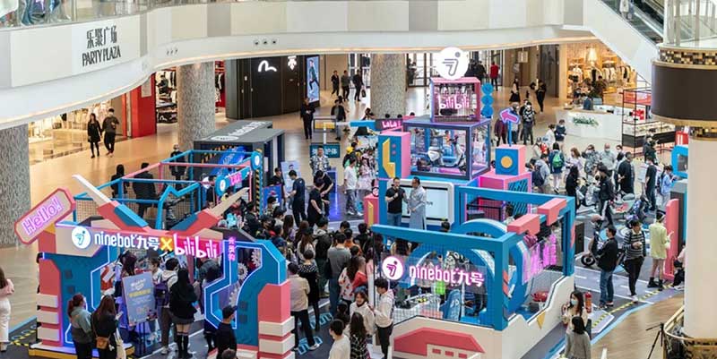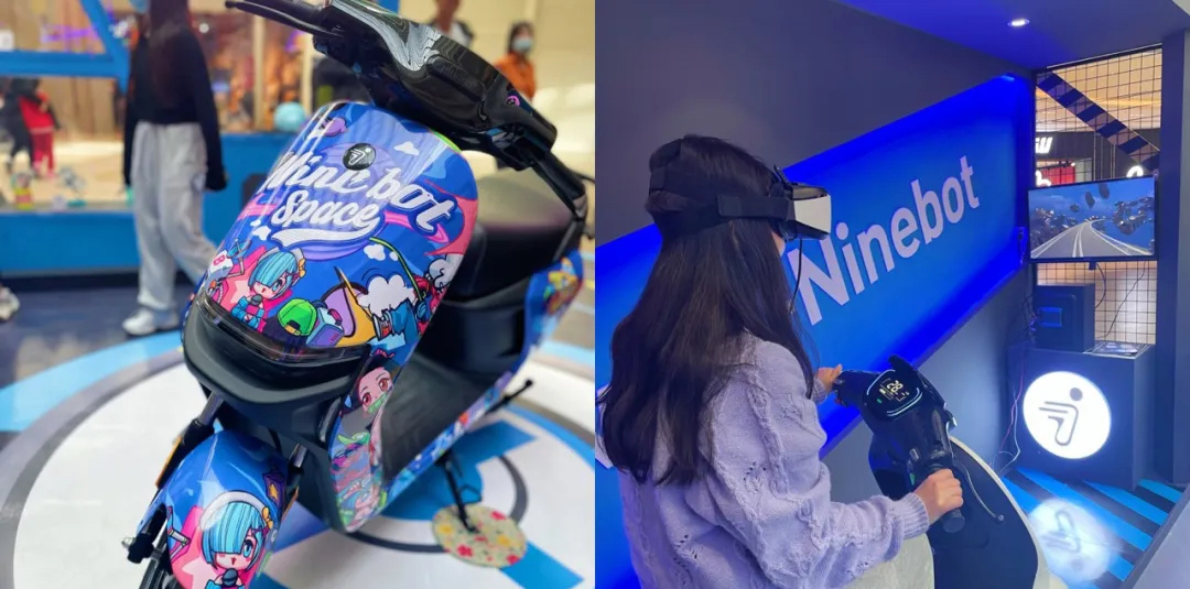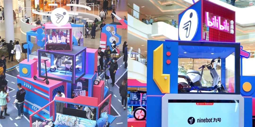 哔哩哔哩会员购x ninebot九号车电动厂牌快闪展览活动吸睛无数,在Ninebot Space空间区域里面中间是一个小型展台,用透明箱展示的电动摩托车和顶部的bilibili会员购发光字logo,很是抢眼,其它区域有VR驾驶体验区、哔哩哔哩周边售卖区、扭蛋区、电动车展示区等,也都引来无数大众驻足留影。