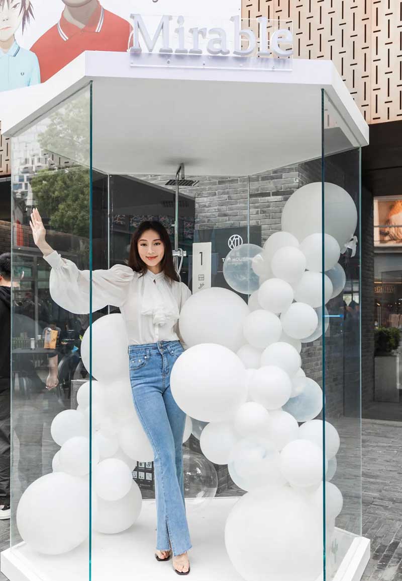 想要一直保持少女般的肌肤吗,秘乐波“为肌肤加秘”用一场浪漫快闪为你破译密码,这是一次革命性的发布会。带你穿梭在如梦似幻的展厅,发现秘乐波的秘密。快闪入口处的“泡泡浴室”吸引了新天地的众多潮人打卡,随手一拍,就是一张张“浴室大片”,走进现场,就感受到了满满的梦幻感和“黑科技”感。现场特别设置了一处流光溢彩的灯光装置,出片率也是超高的,在彩色灯带的簇拥中显得格外高级惊艳,至于今天的主角秘乐波超微细气泡美容花洒,到底有什么样的魔力呢,去体验区体验一番吧。