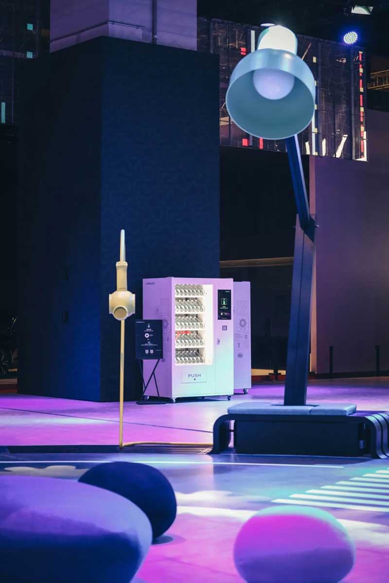 在CO ZONE中心街区,刚一入场,情绪就被现场躁动的声浪点燃,全场C位的CO ZONE尤为显眼,好拍程度更是满分!滑梯、云朵秋千、摇摆木马、巨型台灯、音响香氛头盔… 酷炫的黑色线条串联全场,随便凹个造型都好看!