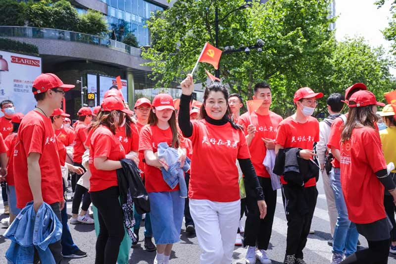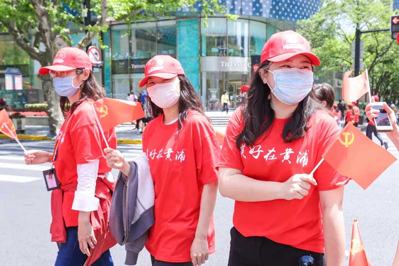 这个突入其来的快闪,发生在这条特殊的百年路口,不仅仅是给路人们制造了一场惊喜瞩目的快闪事件,更是用这一场特殊的百人快闪,开启了黄浦区“美好在黄浦 红色百年路”庆祝建党百年主题宣传活动的开幕。