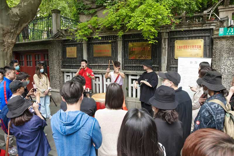 周公馆门口,几位潮流青年用一首极具节奏感的说唱吸引着大家的驻足。这首名为《黄浦·红色印迹》的歌曲,内容主要是讲述黄浦这片热土上的红色故事,你很难想象他与说唱这个形式联系到了一起。作品主创侯龙是黄浦教育系统中一名基层党务工作者,他坚持创作歌曲、漫画、短视频等讴歌新时代的文艺作品,作品曾荣获:上海市“唱响十九大歌曲”十佳优秀歌曲、黄浦区最佳公益宣传作品等。
