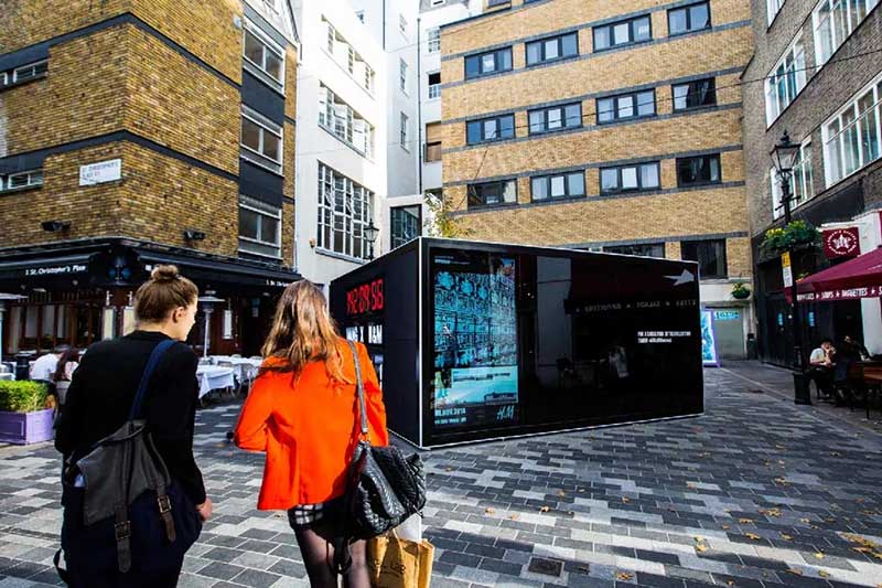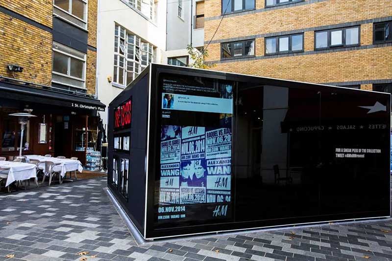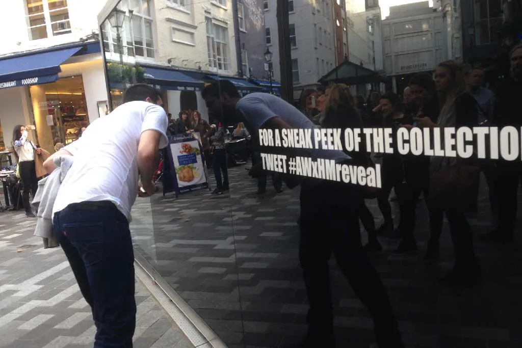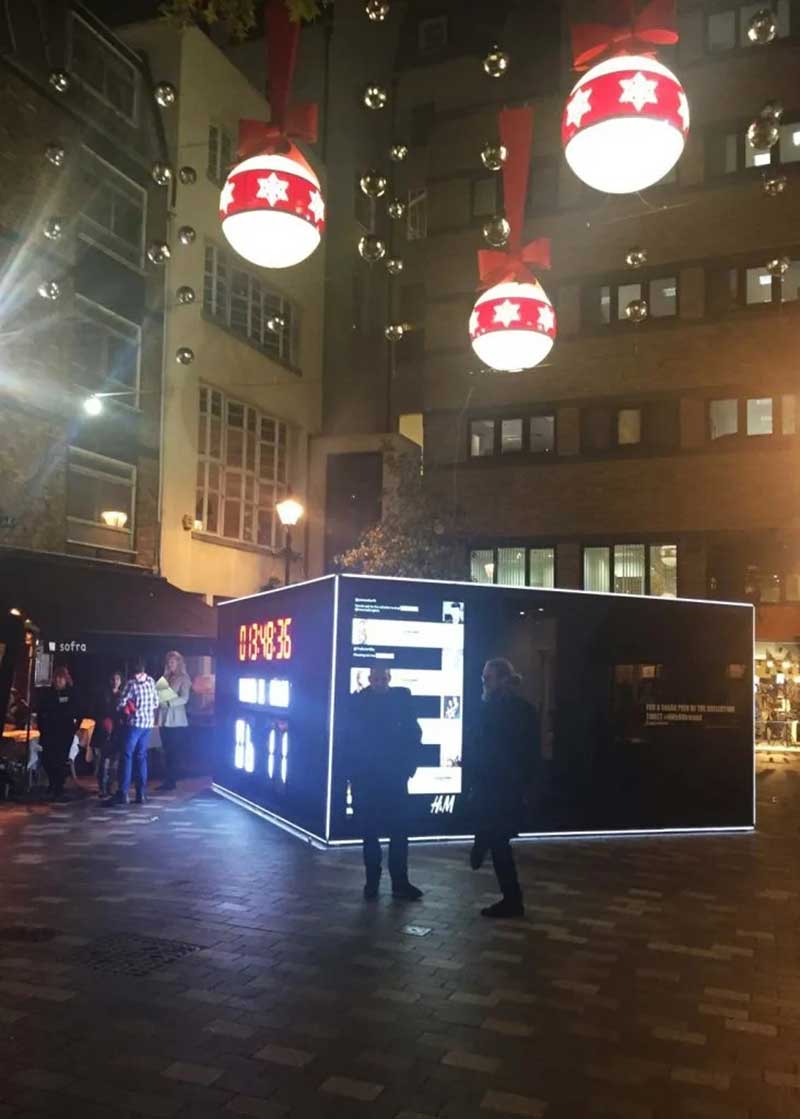 这个“盒子”一夜之间出现在伦敦圣克里斯托弗广场,主要关注点和社交参与度背后的驱动力是推特,当一名路人在推特上以#AWxHMreveal为标签发布该活动的社交媒体内容时,橱窗中的一个将亮起来,露出了藏在玻璃后面的一件衣服。