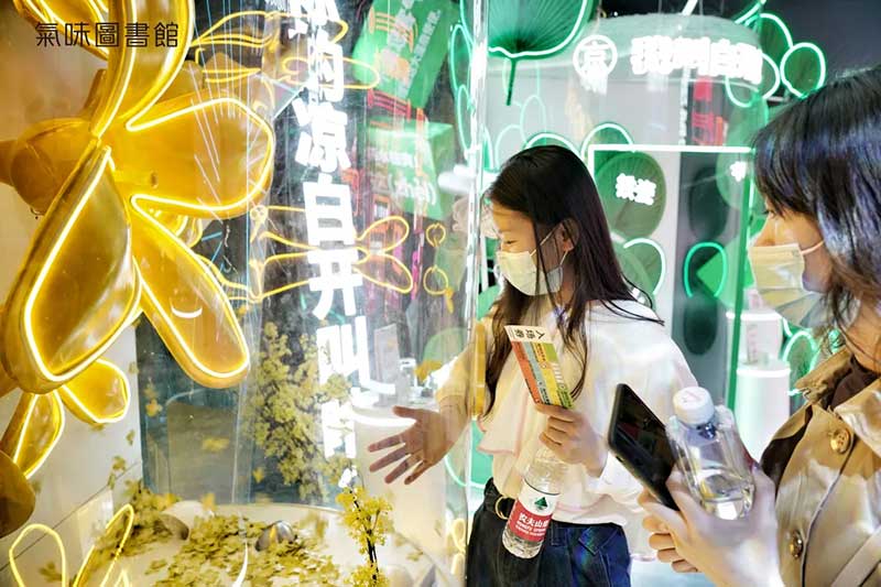 深受年轻人喜爱的中国香氛潮牌——气味图书馆最近又在玩什么新花样?凉白开大铝壶装置展空降西单大悦城,从视、听、闻、触、情五大方位为京城的弄潮儿们带来一场全面的感官体验。本次装置展现场更是氛围感满满,一把身高六米大的铝壶占领一层的C位,并根据北京、上海、广州、成都四座城市分为四个展区,每个展区都有不同的玩法,快来看看攻略吧!
