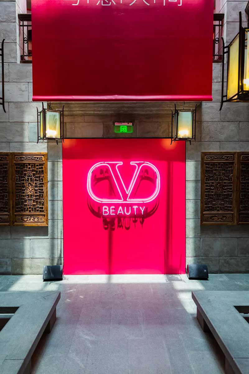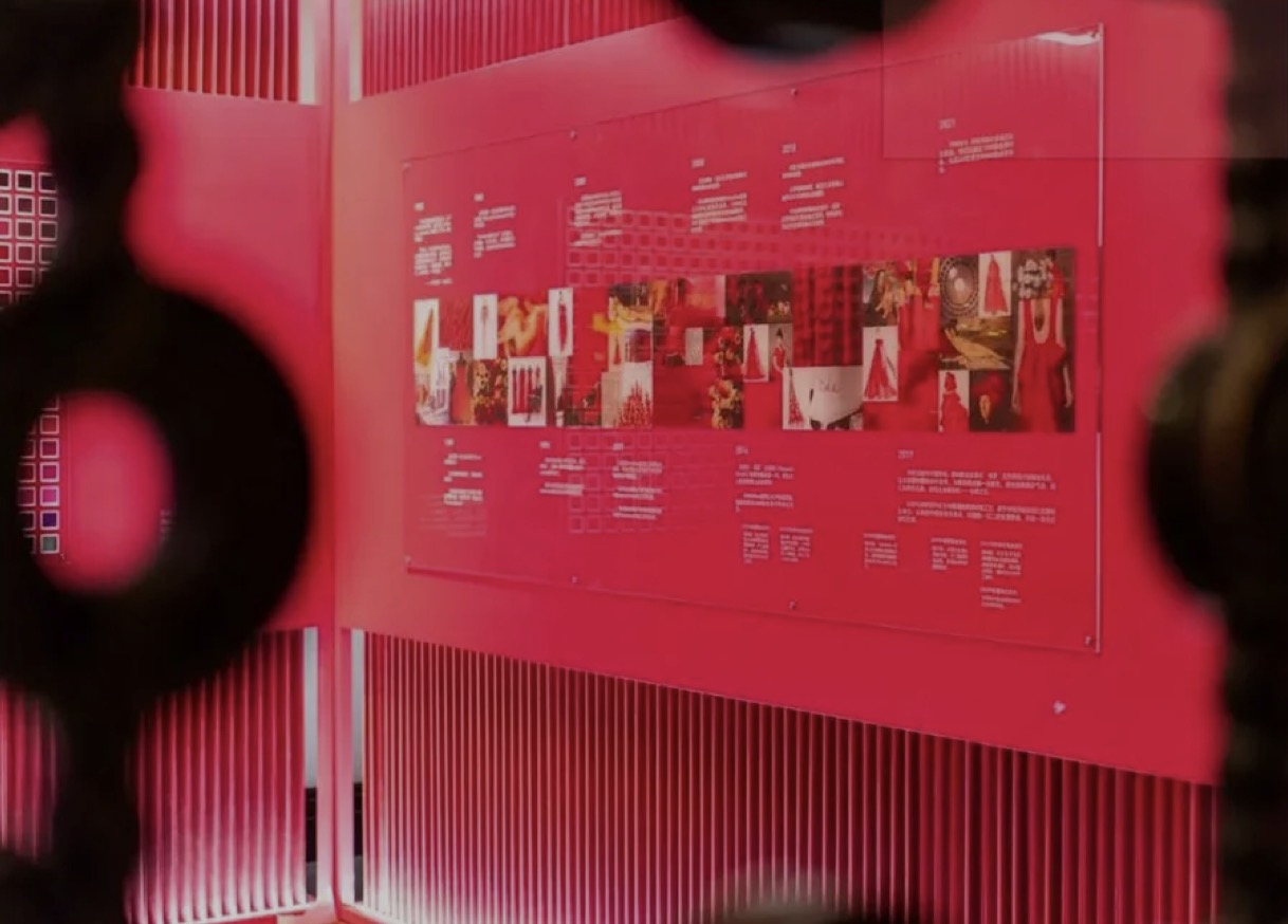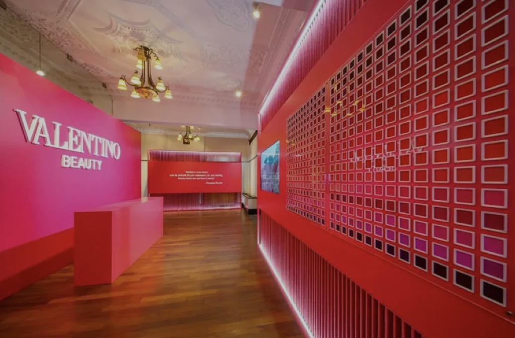 本次VALENTINO BEAUTY亮相上海,选在了新天地壹號里,石库门搭配华伦天奴的红,沧桑感里透露的高贵气质。往门内走去就可以看到这墙,特地从意大利空运而来的布料,华伦天奴记录在案的红色都在这里,已经超过3000多种,当然,这可不仅仅是供大家欣赏的,先给你们卖个关子,和后面的彩妆内容也有关系哦。在布料墙旁边还有华伦天奴的高定秀场历史记录,1950年起至2021年,每一抹“红”的瞬间都被珍藏展示在这里。再深入走还能遇见这面华伦天奴为大家准备的拍照打卡墙,标准的石库门沉稳格局里出现了如此鲜艳的红,不仅不突兀,反而让人眼前一亮,就好像本次VALENTINO BEAUTY登入中国,优雅且大气,让人期待欣喜。