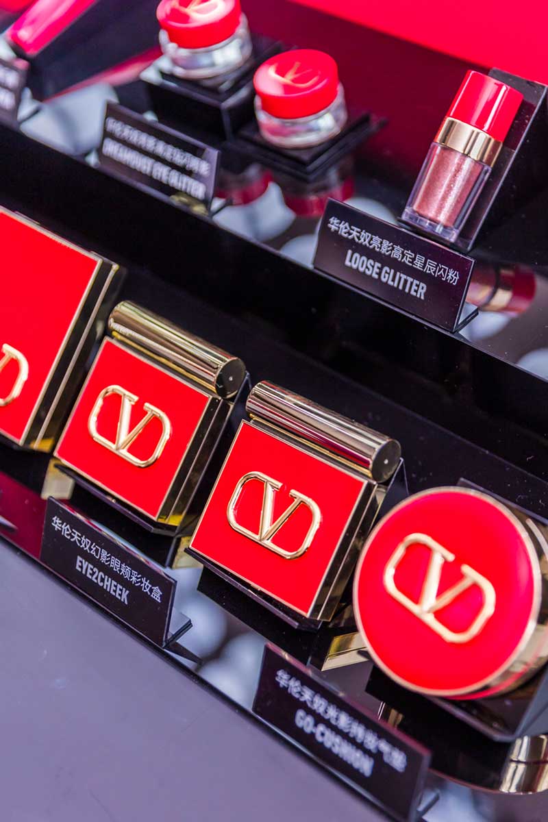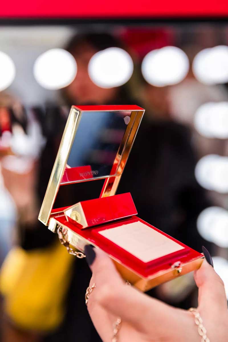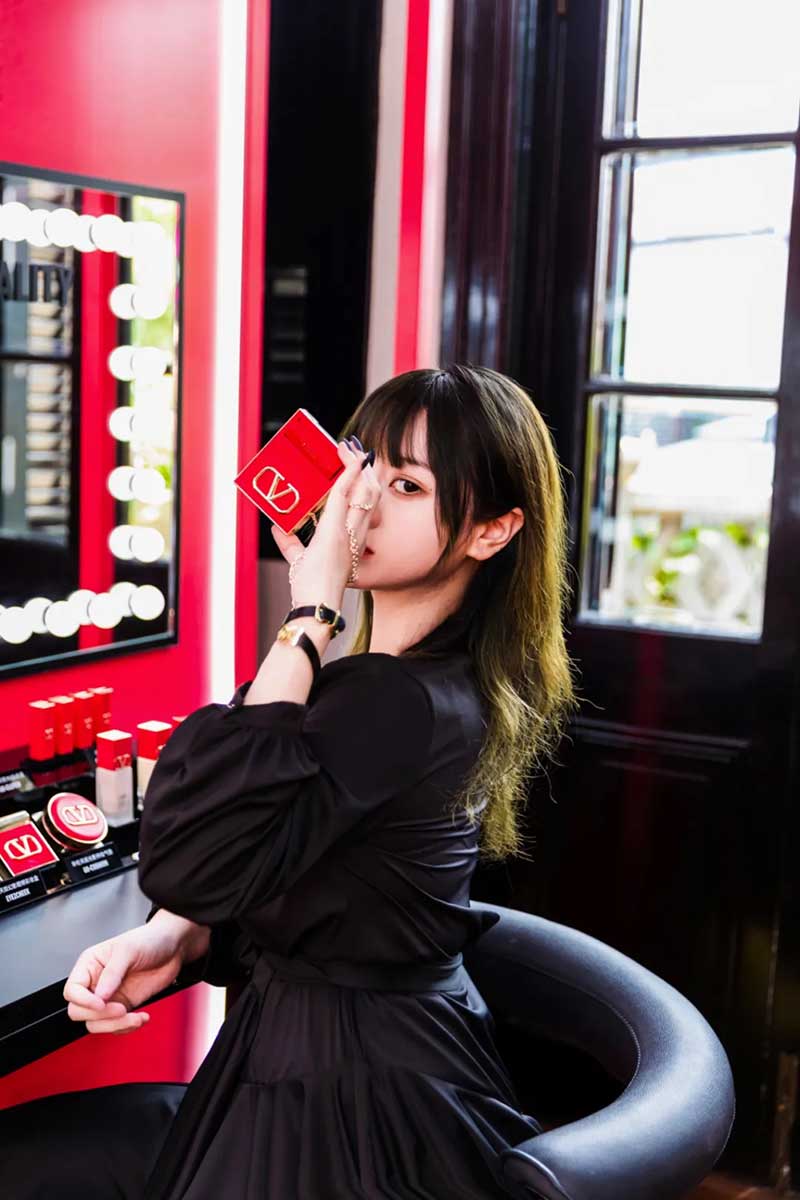现场还为大家展示了本次彩妆线的全部口红色号,50款高定唇色,50袭高定华服,每一色都是诗与浪漫的碰撞。口红里还包含了罗马之光,所以颜色饱和度很高,可以做到口红10小时持妆。还有源于12场高定秀的12款腮红,以及各种美妆产品现场都能使用,里面全部包含了佛手柑精油,在变美丽的同时,还能让大家身心保持愉悦,真的太贴心了。在这里补完妆以后,可以到3楼的露台看下室外妆效,非常服帖有质感,顺便和华伦天奴的粉色气球合个影。