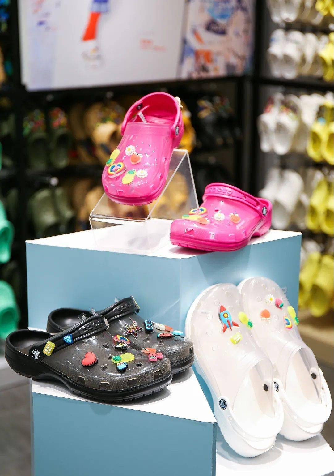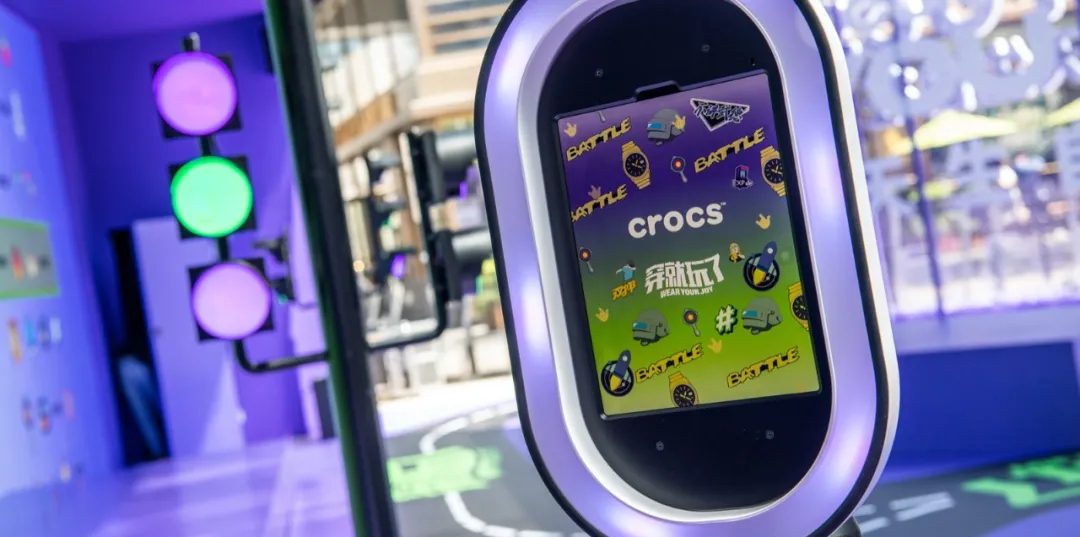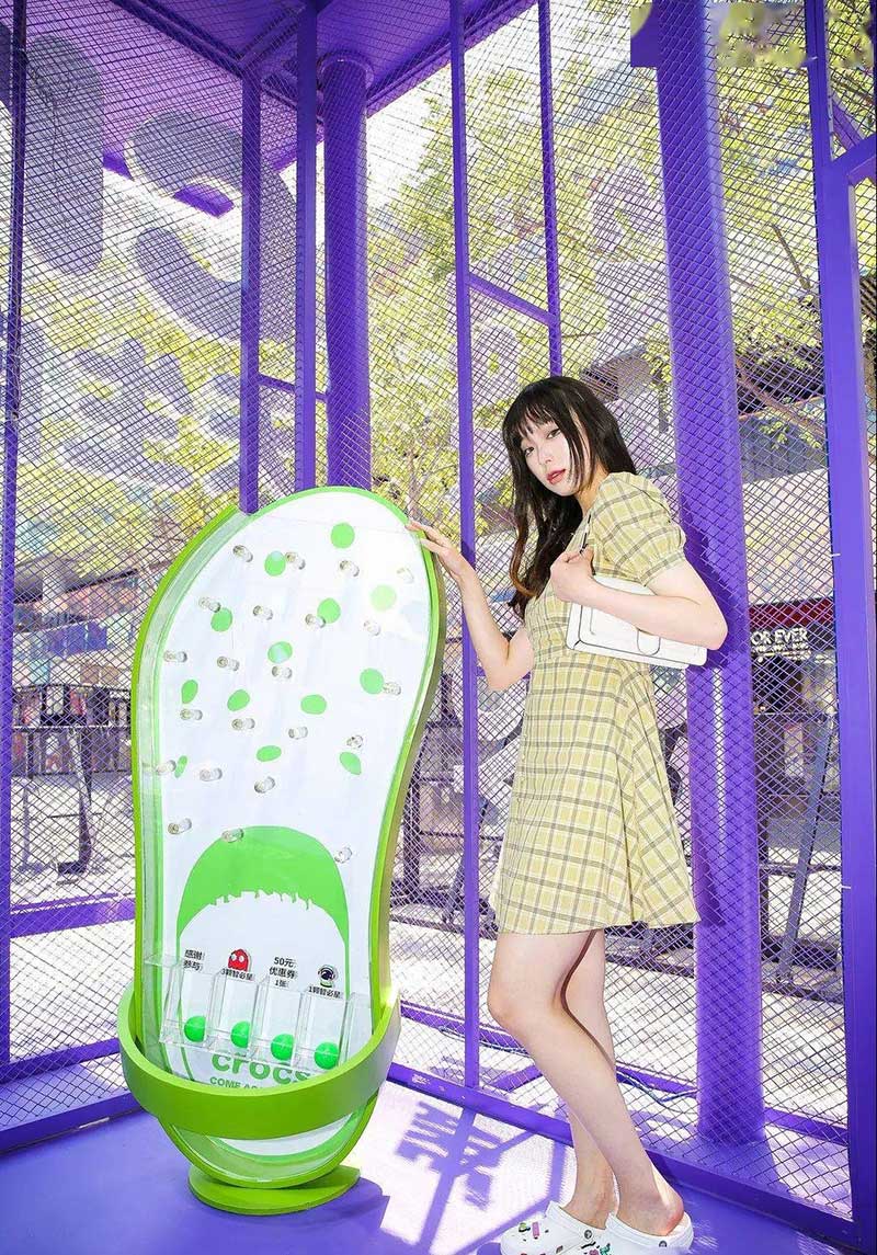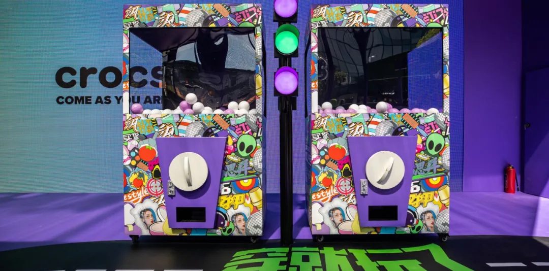 活动现场Crocs的经典鞋款如众星捧月般,身处在整个快闪空间的正中央,四周围绕着的是以Crocs智必星为灵感的体验站,每一个体验站不管是空间感官、互动体验还是产品定制,都充满了无限的创造力。在这些体验站中,艺术家涂鸦区、游戏互动区、拍照互动区,每一个都好玩到炸裂。