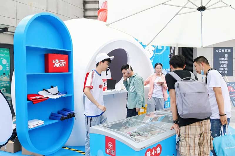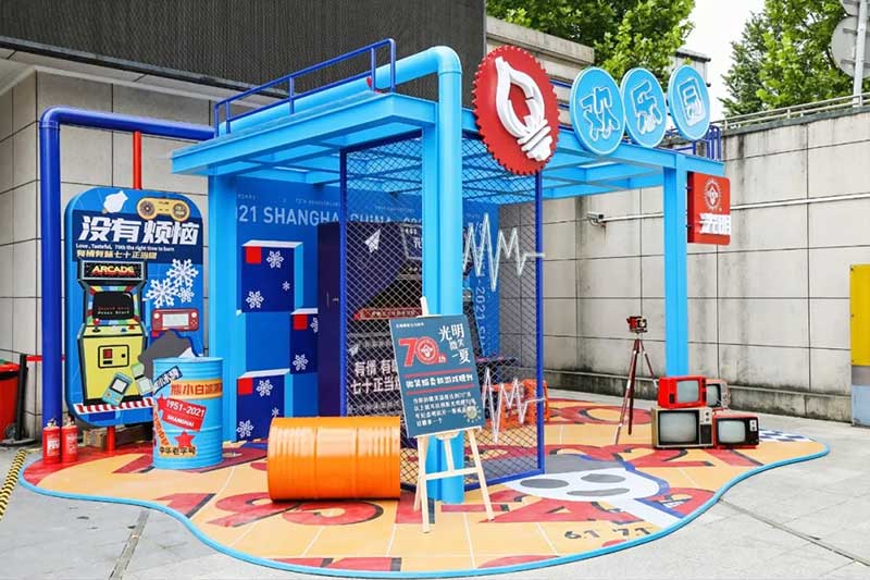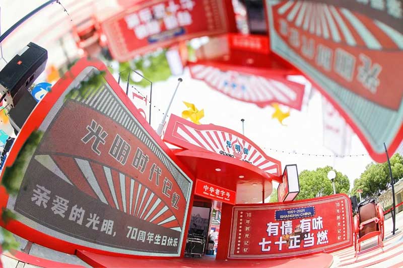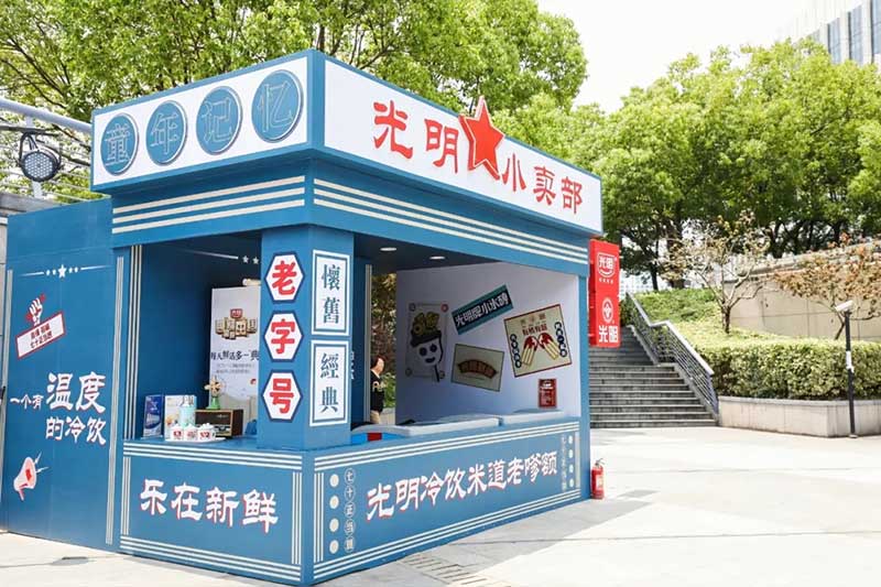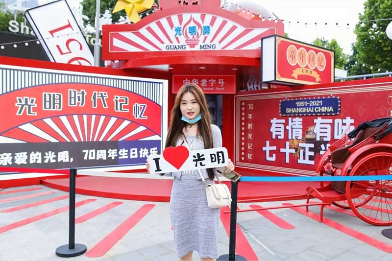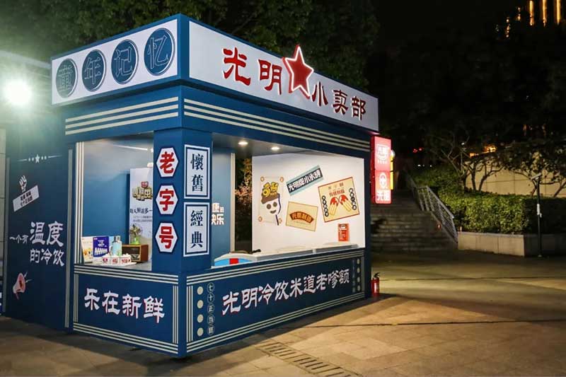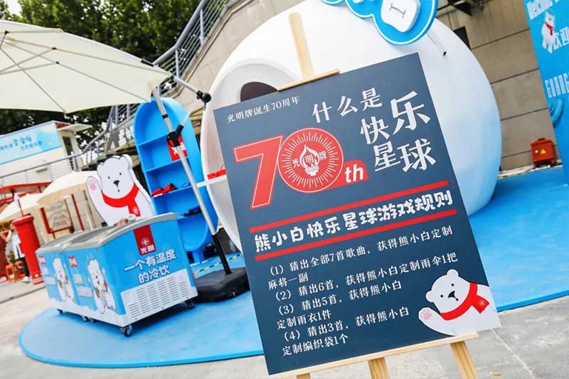 2021年恰逢光明品牌成立七十周年,亦是建党百年之际,这里见证了一个民族品牌的成长,也见证一个时代的跃迁。回首七十年峥嵘岁月,光明冷饮品牌将自己定义为“一个有温度的冷饮品牌”,70年如一日,践行初心,将这份温度和时代结合,和人文结合,和人们的生活紧密相连。所以此次活动的主题:有情有味 七十正当燃。活动现场用夸张明快的设计手法结合复古的画面内容及充满回忆的互动,展示了一个老品牌的燃动活力。这个夏天,现在让我们乘坐“光明”时光列车,带上你的童心,一起出发,前往五十年代。