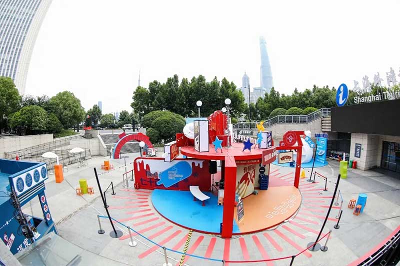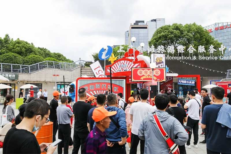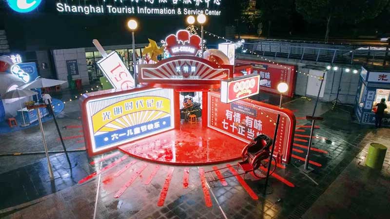 上世纪八九十年代的上海,充满烟火气的街头弄堂里一声声“光明冷饮米道老嗲额”不绝于耳,在这个杂货铺前,挑选心爱的童年爱物踢毽子、跳房子、拍画片,完成任务还可以收获礼品。