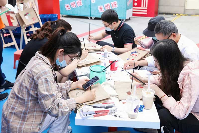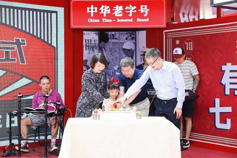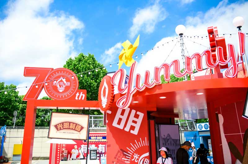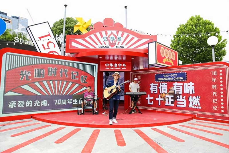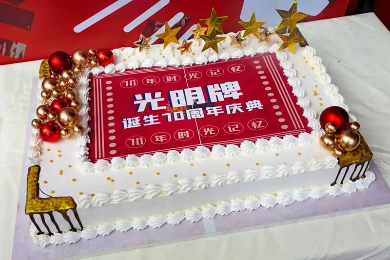 乐队开启快闪店启动仪式,接着为庆祝“光明牌”70周年,在场领导和与会嘉宾共同切下“光明牌”七十周年的生日蛋糕,许下了有关品牌未来的美好愿望,“光明牌”也将开启新的征程。