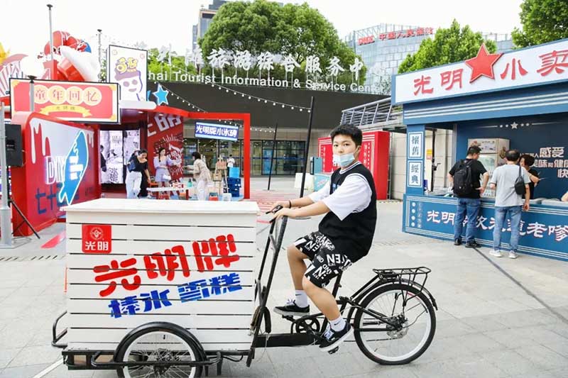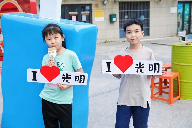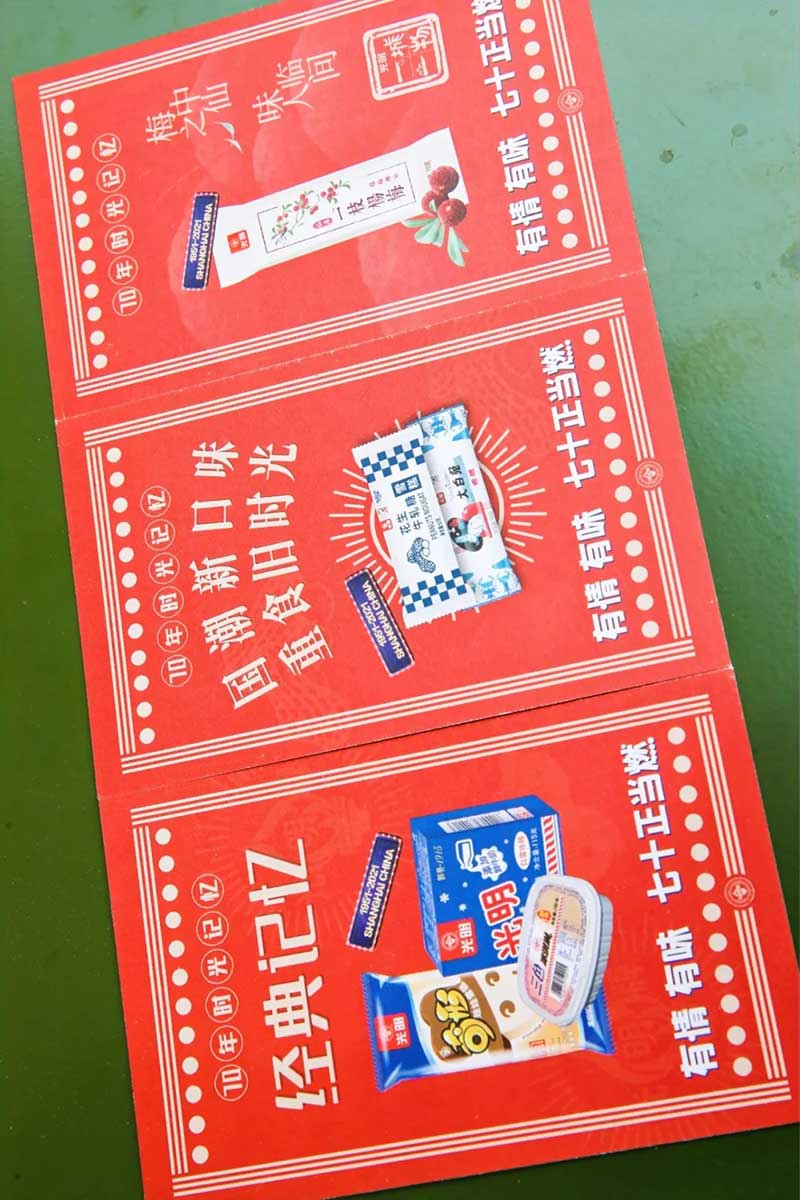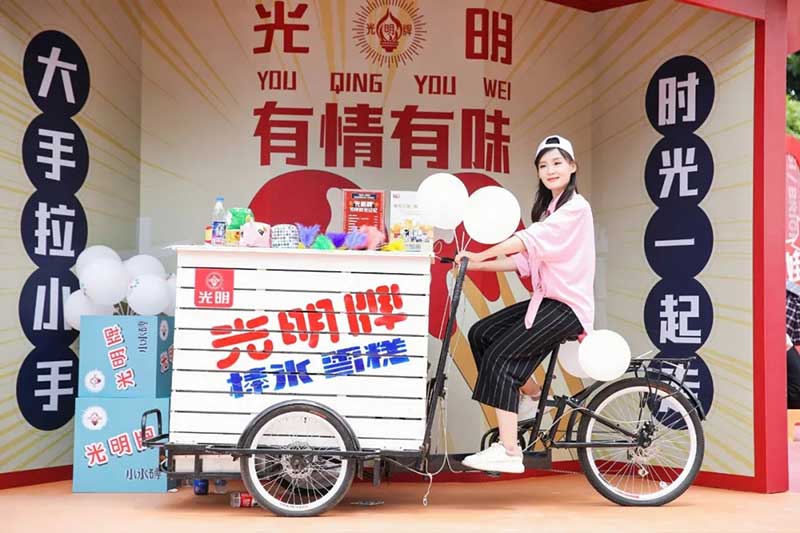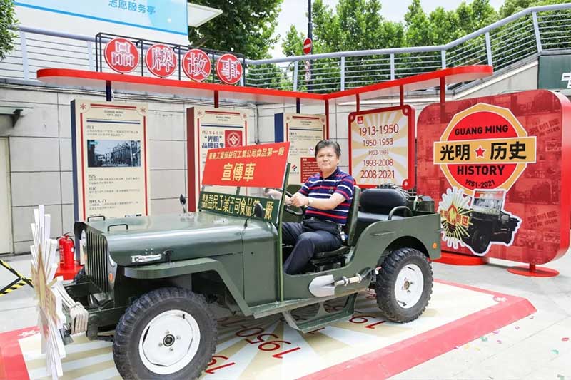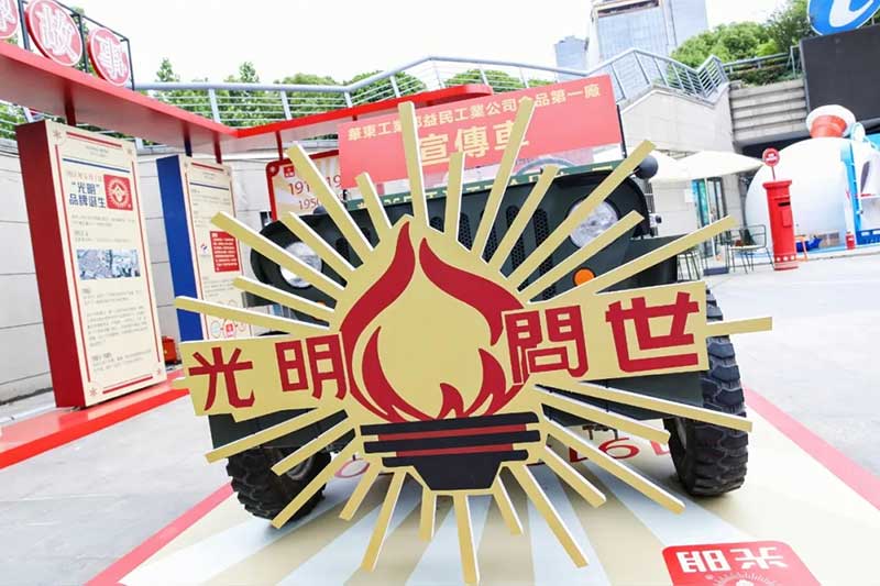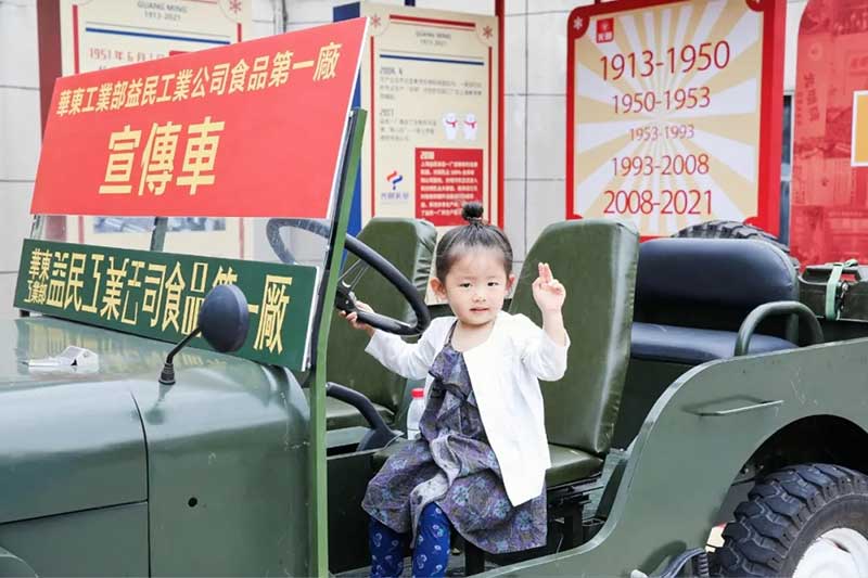 写一封给未来的信,让我们相约光明100岁生日。现场还有有趣的DIY互动区域,有充满回忆的小卖部,还有光明最初的宣传车降临现场,切切实实的回忆过去的时光。绿色的铁皮车、红色的宣传牌……华东工业部益民工业公司食品第一厂的宣传车映入眼帘。许多人的童年记忆里,宣传员就是在这样酷炫的宣传车上为大家免费送棒冰,得到棒冰的小朋友们,会把冰棍都舔干净。那时的一根棒冰,是幸福的味道。