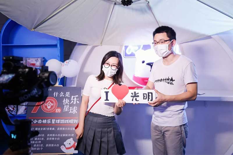 没有熊比我更懂你,如果你想知道什么是快乐星球?就让我来带你一同研究,萌趣可爱熊小白空降快闪店现场,震撼亮相,与伙伴们亲密互动。聆听熊小白歌唱,猜出歌名,即可赢熊小白周边好礼,一起把快乐“装”回家。
