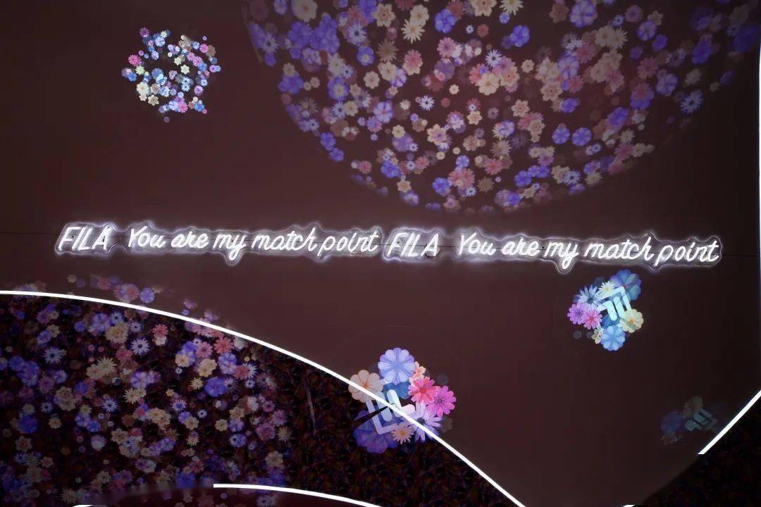 FILA广州太古汇限时快闪店活动现场以粉色为主视觉,采用如同网球悦动的曲线轨迹,联结多个网红打卡点及互动体验,网红咖啡馆的“花海设计”演绎FILA的意式优雅与魅力。在沉浸式互动体验区,布尔运动的花朵缓慢变化,如同无数繁星闪烁,在「星空」下伸手即可触碰每一朵花,好似寻找属于你的Match Point。